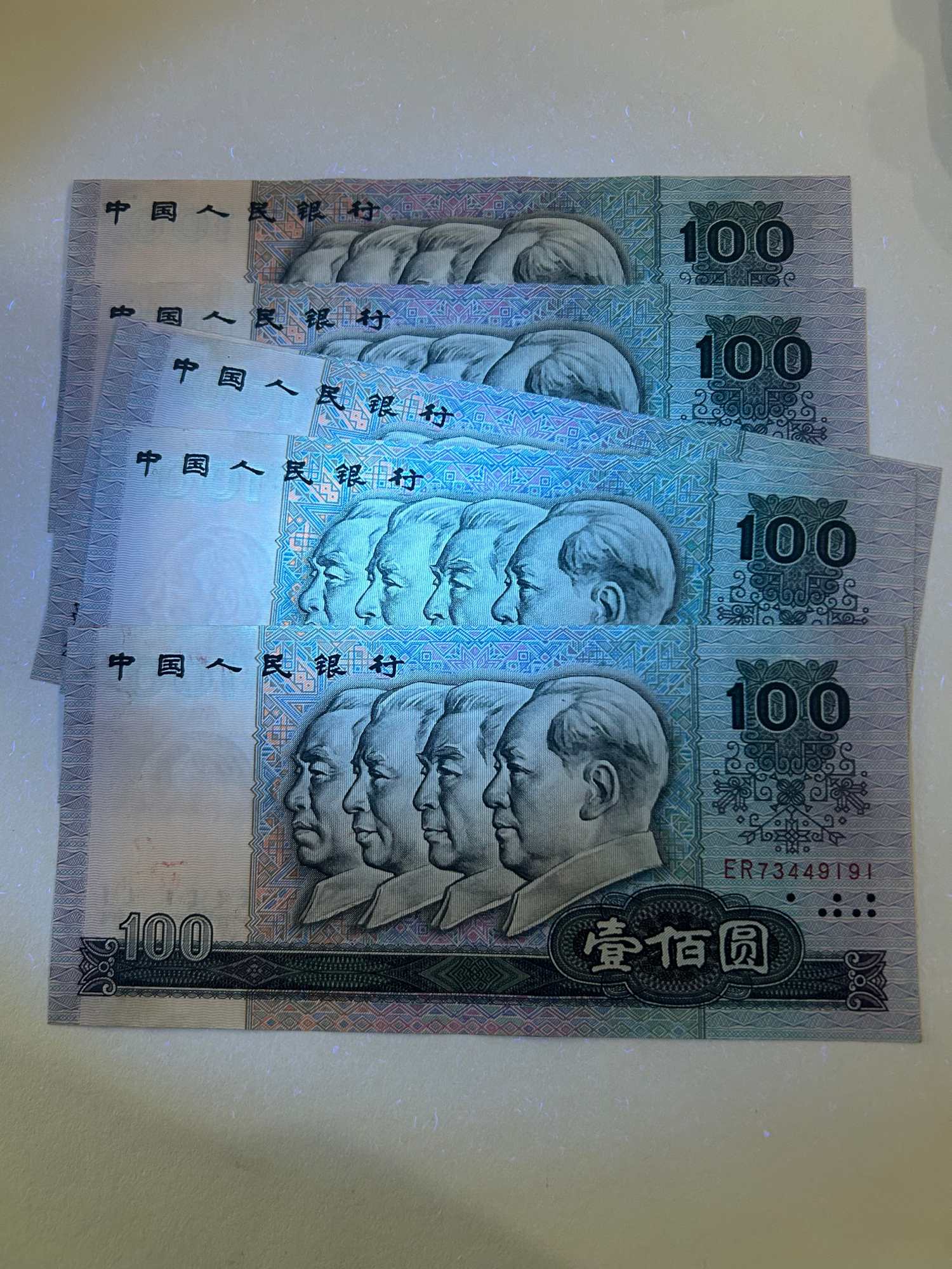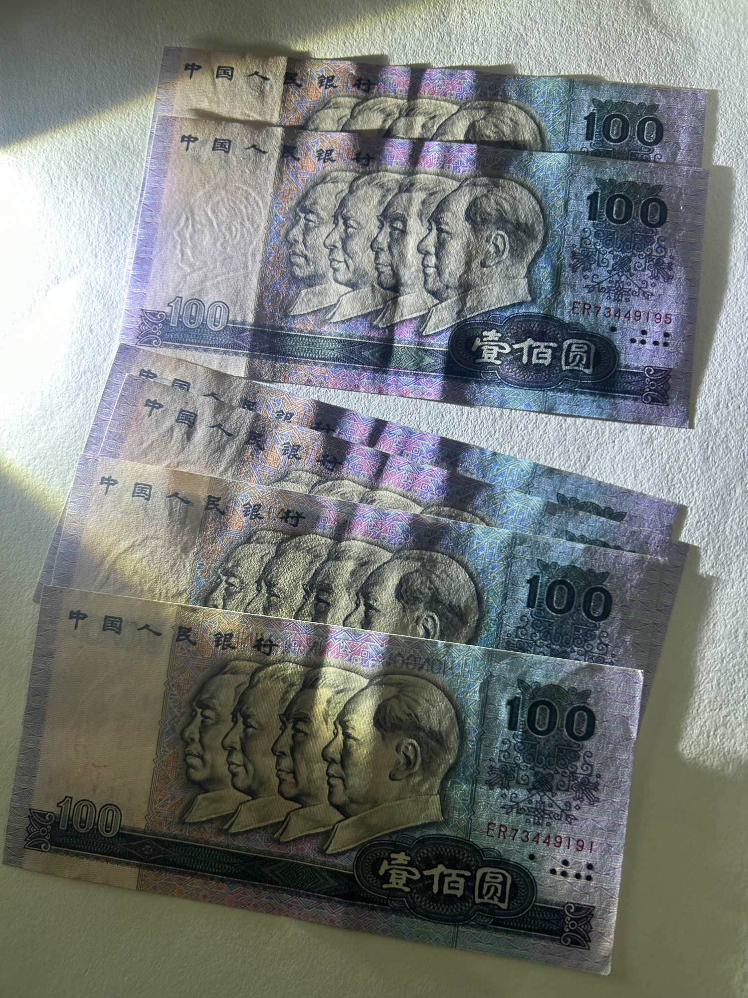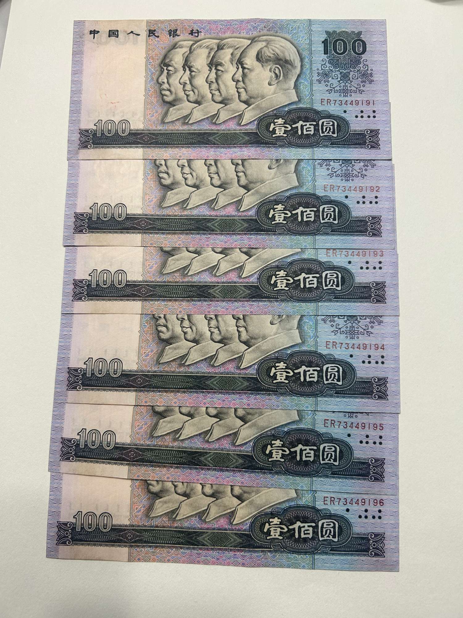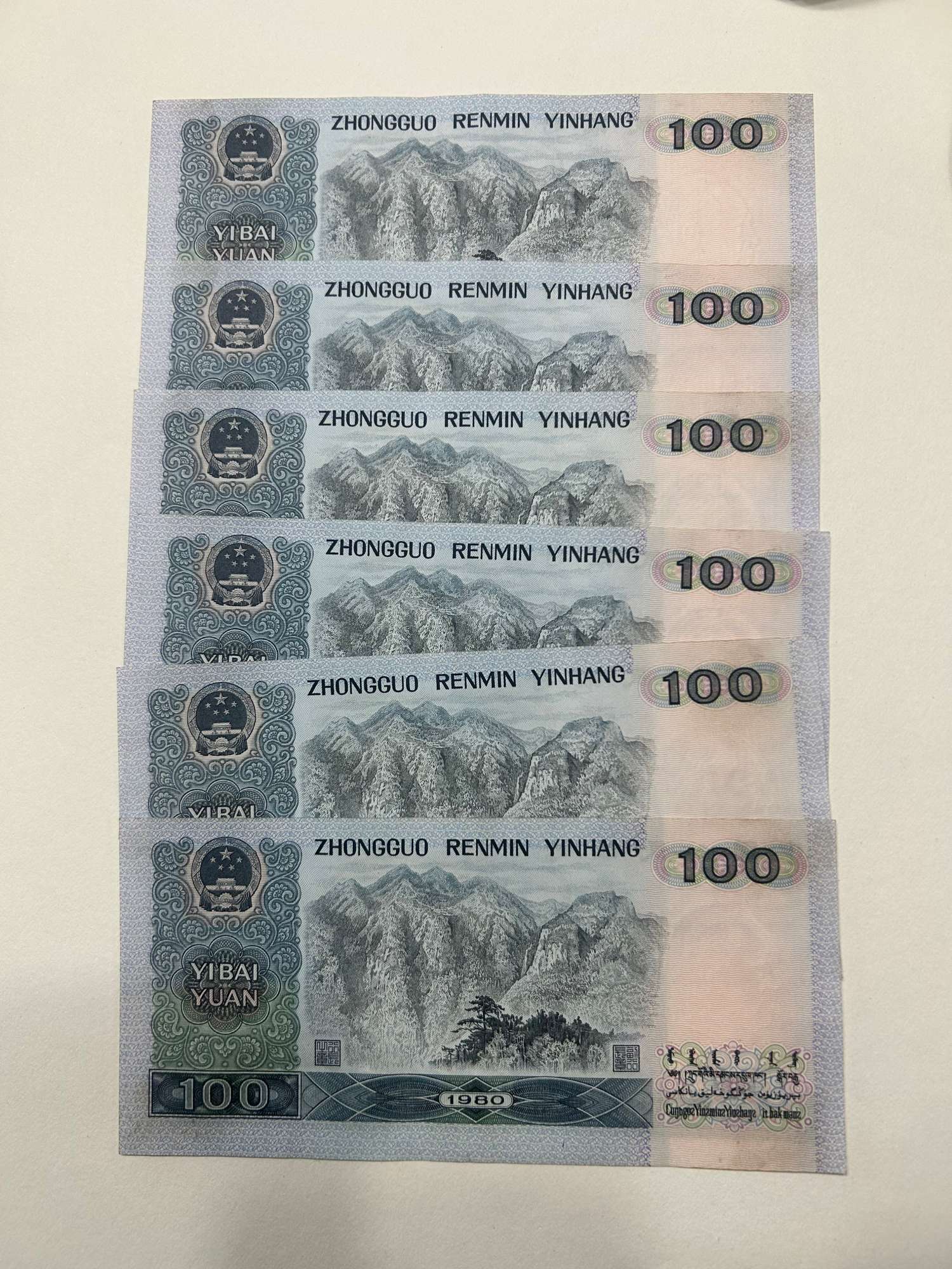 80100六连号,原票轻微软折,灯下无斑,380/张。