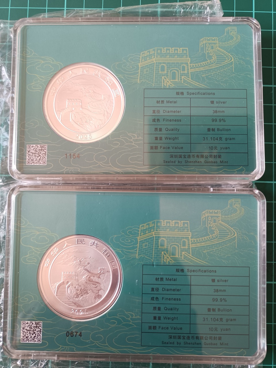 → 出售2枚2025中国龙银澳门城市卡4300元包邮