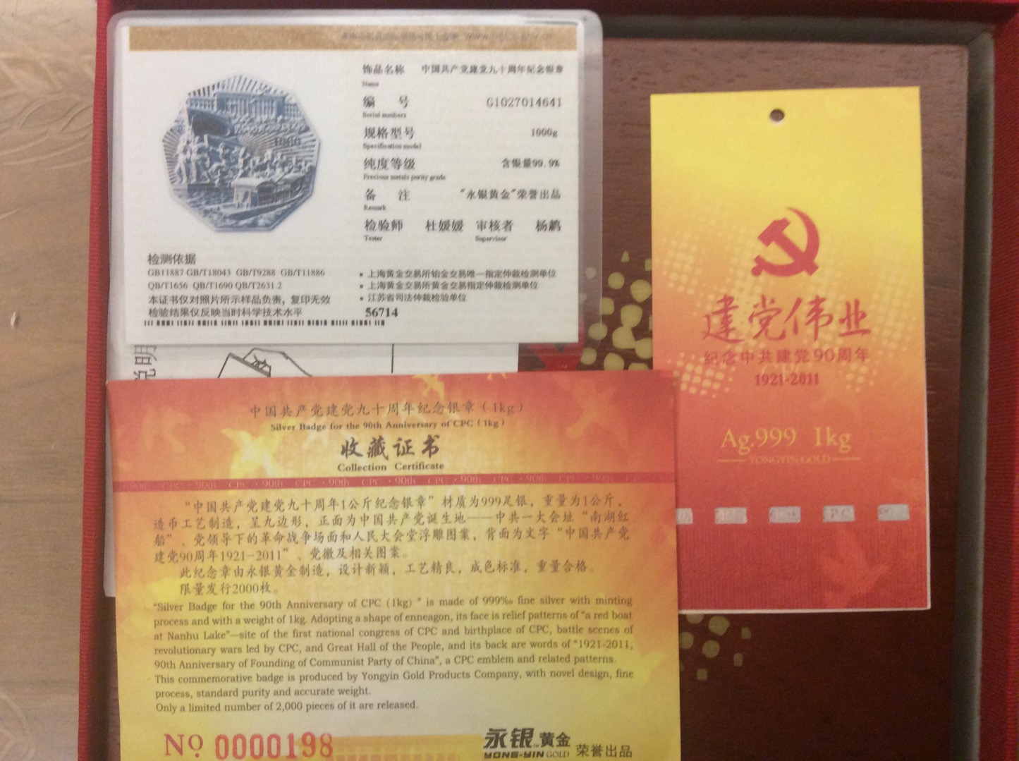 出公斤建党伟业原盒原证,币有氧化,价格:26500元,包顺丰,电话确认