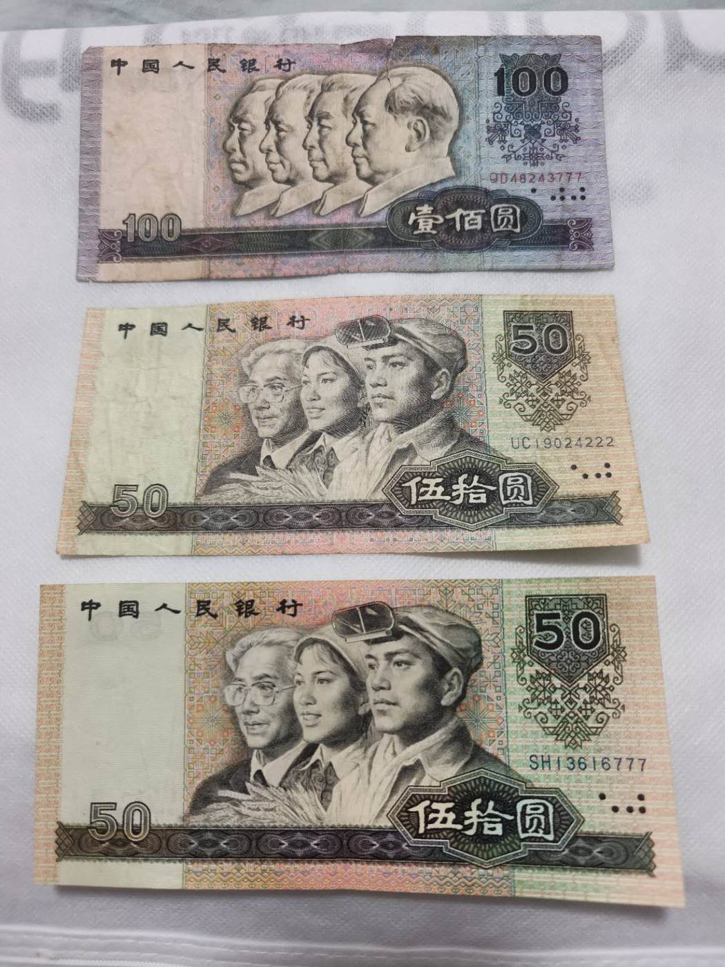 原票2张9050豹子号(无裂口)、1张90100豹子号(大裂口)…………合售580元