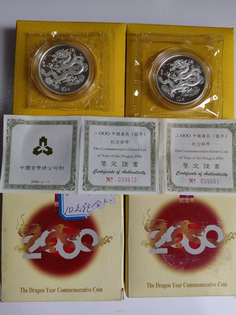 → 代友售一2000年圆银龙币2枚