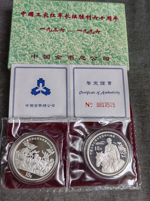 → 代友售一收藏级品相红军长征60周年银币1套