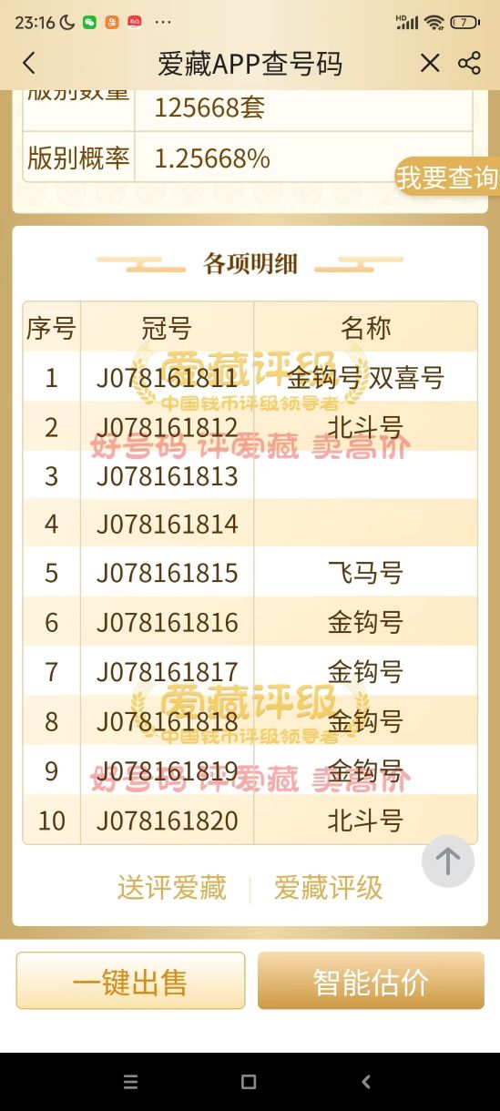 → 420一组马钞金钩号标十一组,号码好,包含01689五福,独7