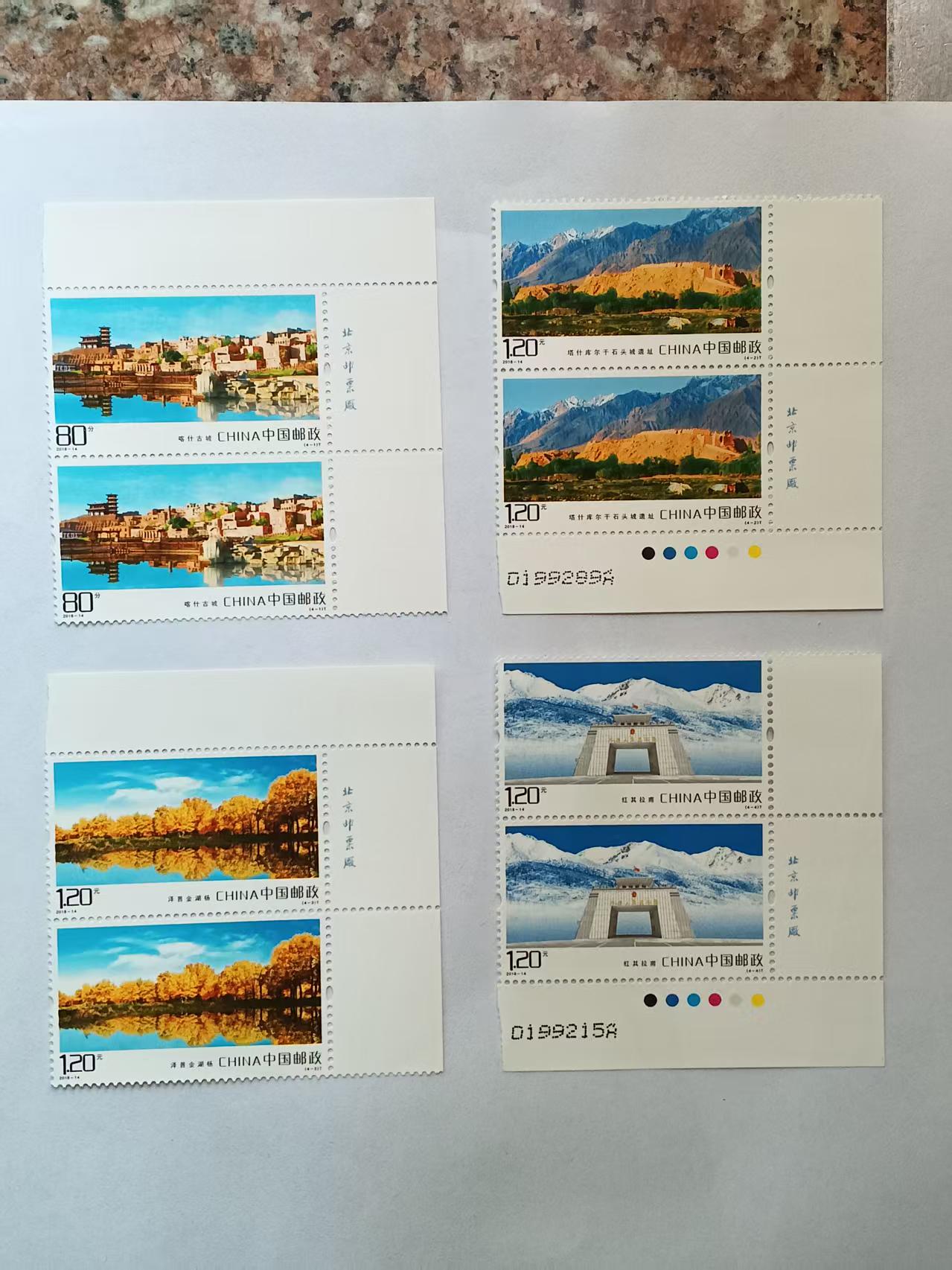 2018-14喀什风光:右下直角厂铭方联,11元