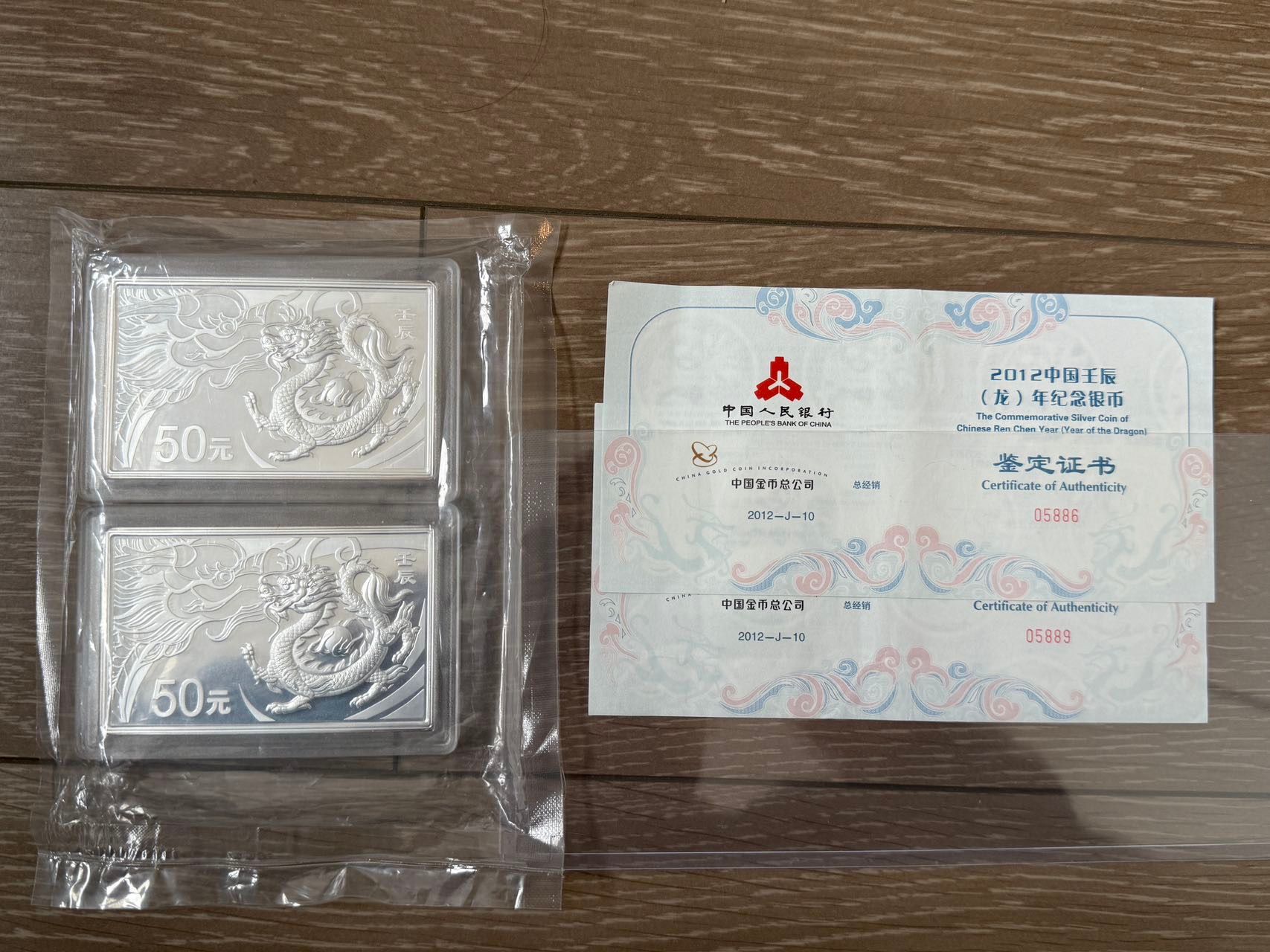 → 2012壬辰方银龙靓号金马王两枚,有证书没盒子,好品