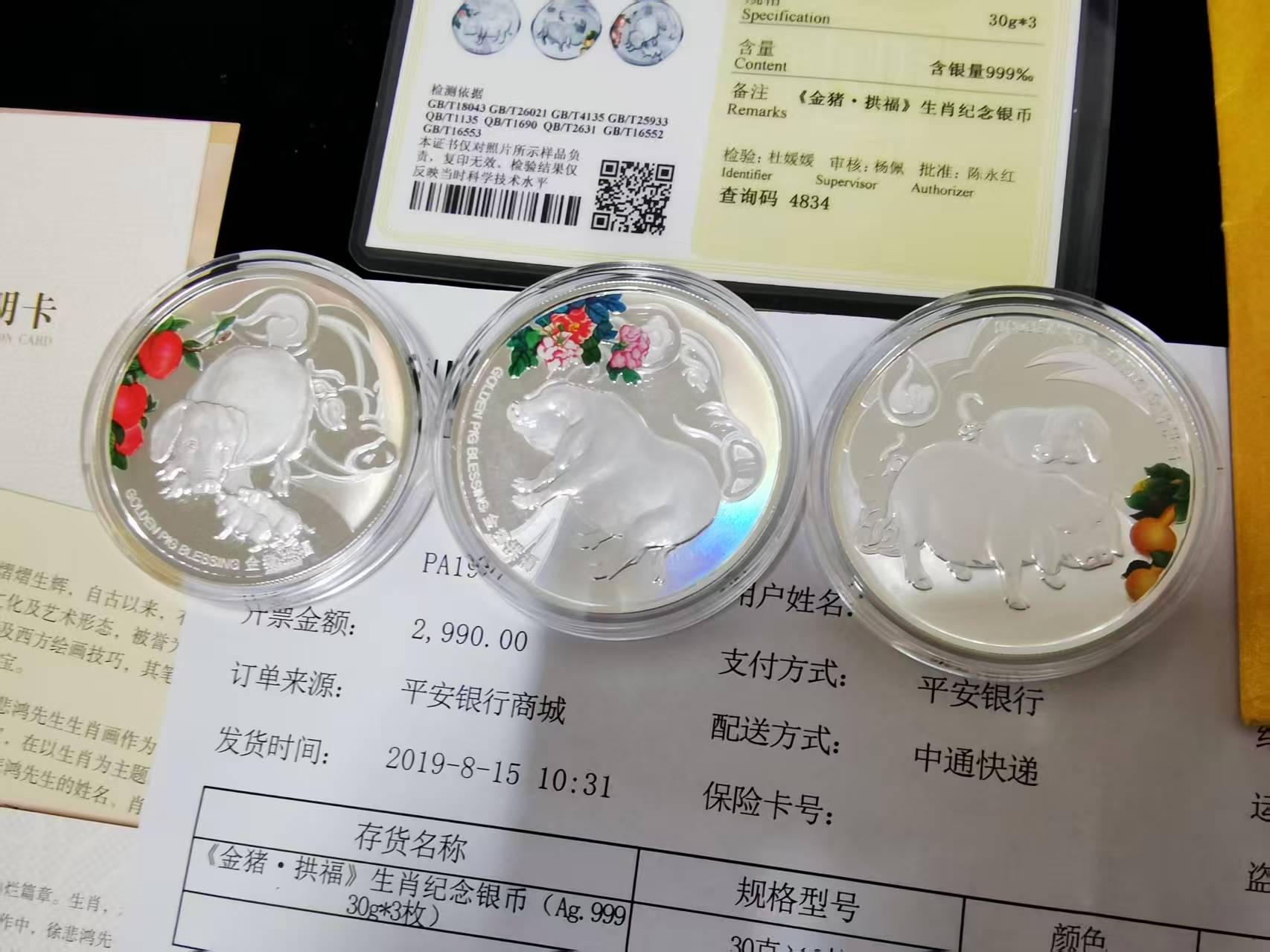 平安商城19年购买 证书说明书 发货单齐全