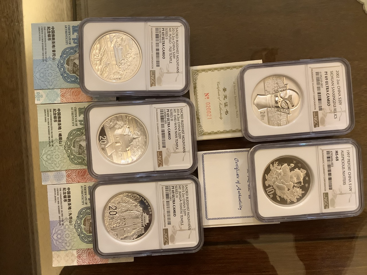 NGC 69普陀山、峨眉山、九华山、三星堆2盎司银几枚