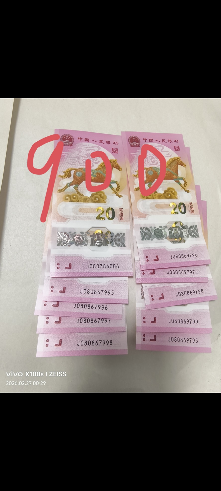 出马钞金勾王10张 900元通走包顺丰