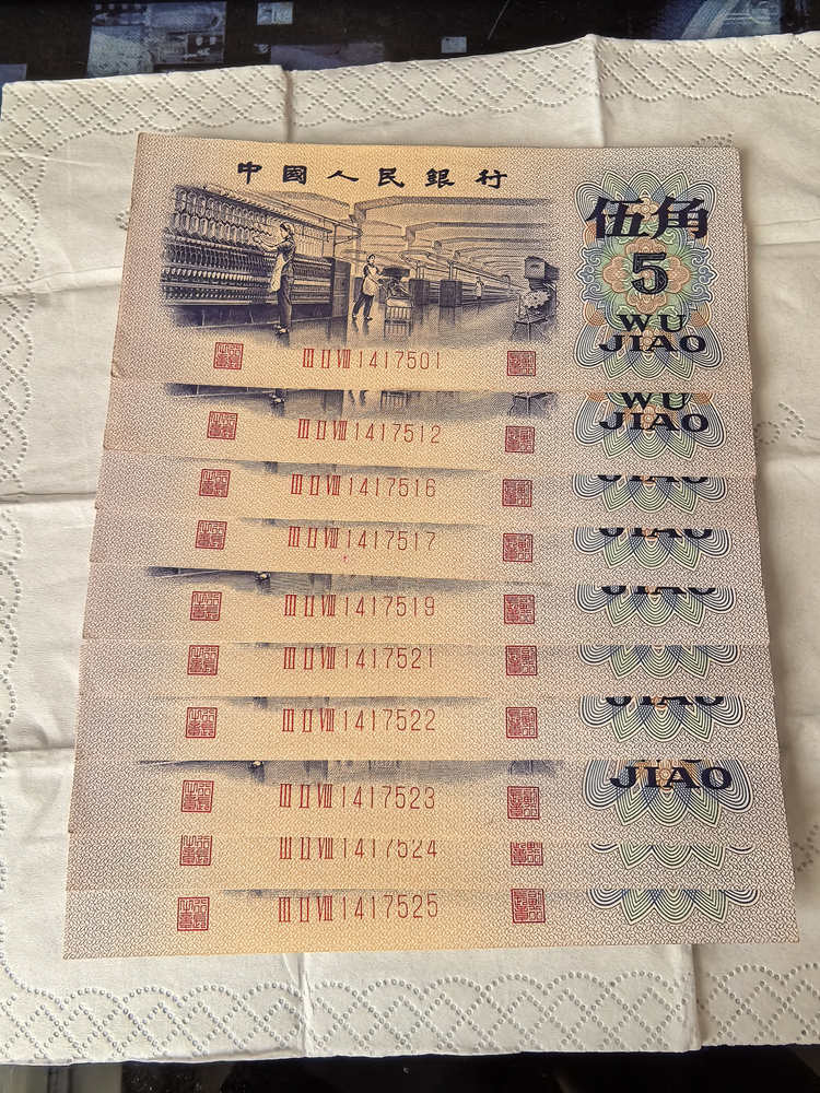 → 原票直版好品纺织五角20张含金马号年份尾10连