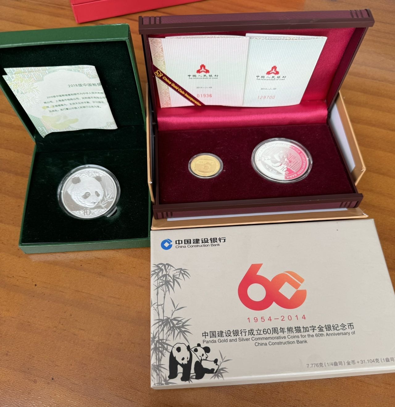 → 售18年熊猫一枚 14年建行熊猫金银 120克银条