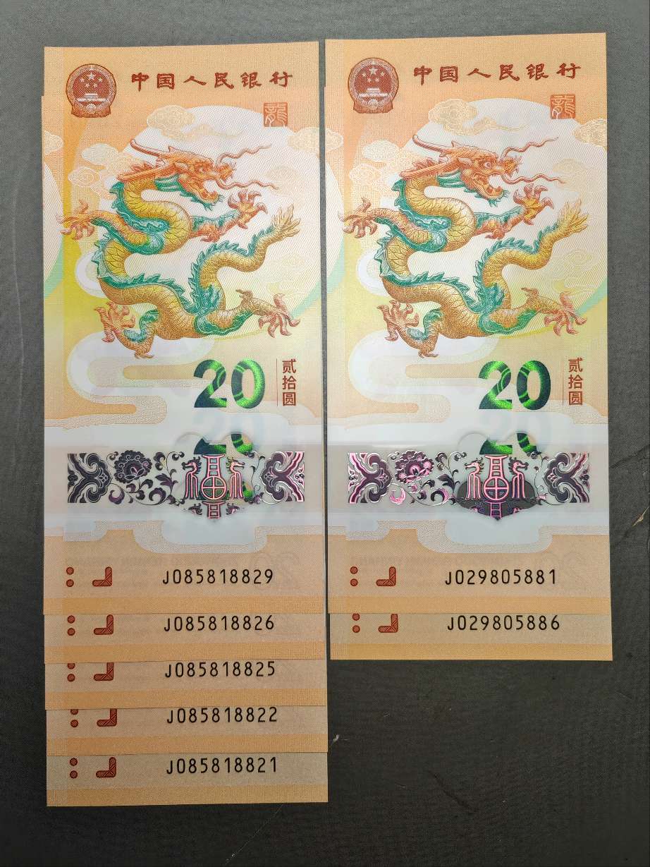 小龙钞400一张通走,号码不错,蛇钞小司令有金马号朦胧王等号码如图300一张通走,品相都没有问题
