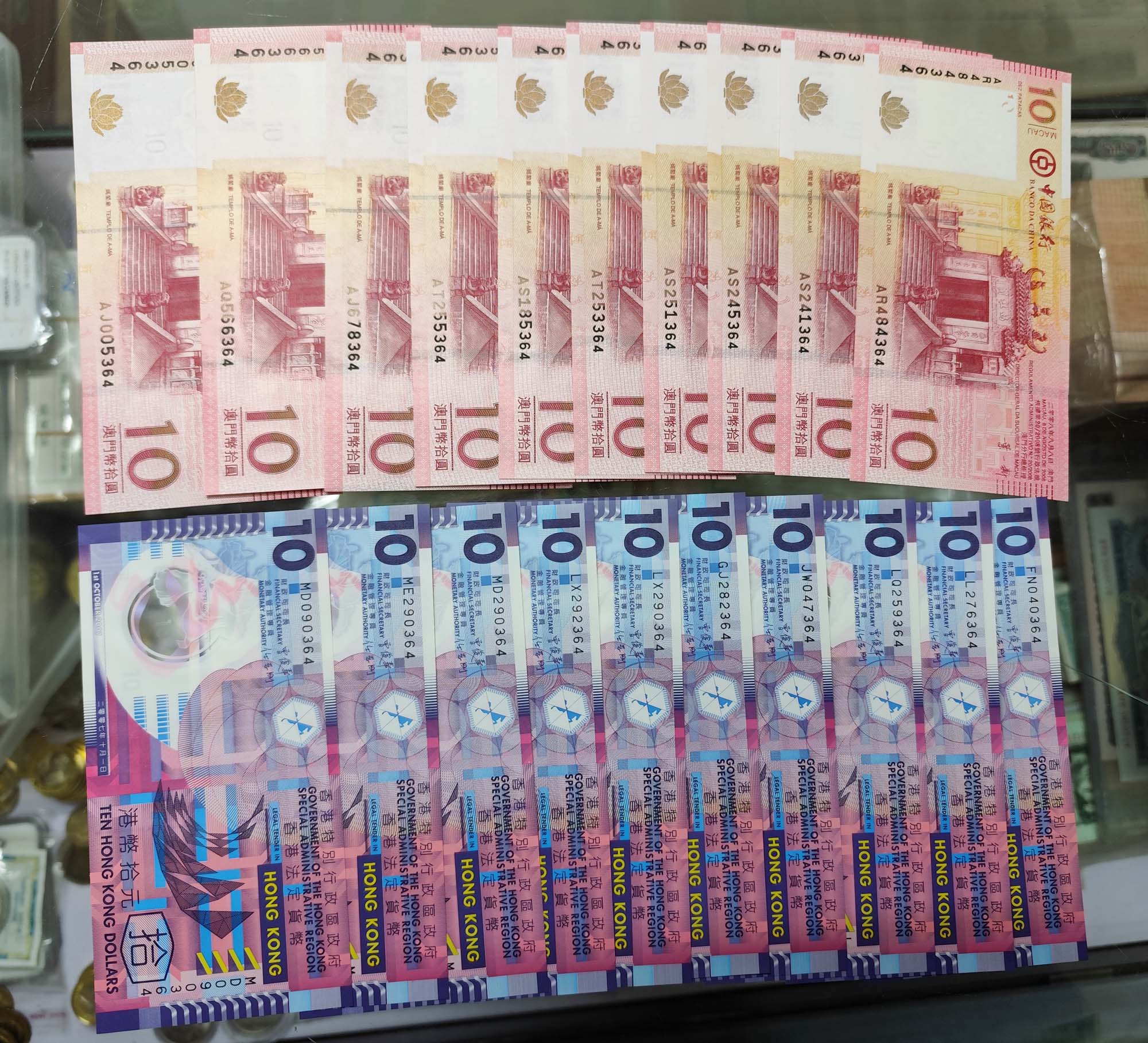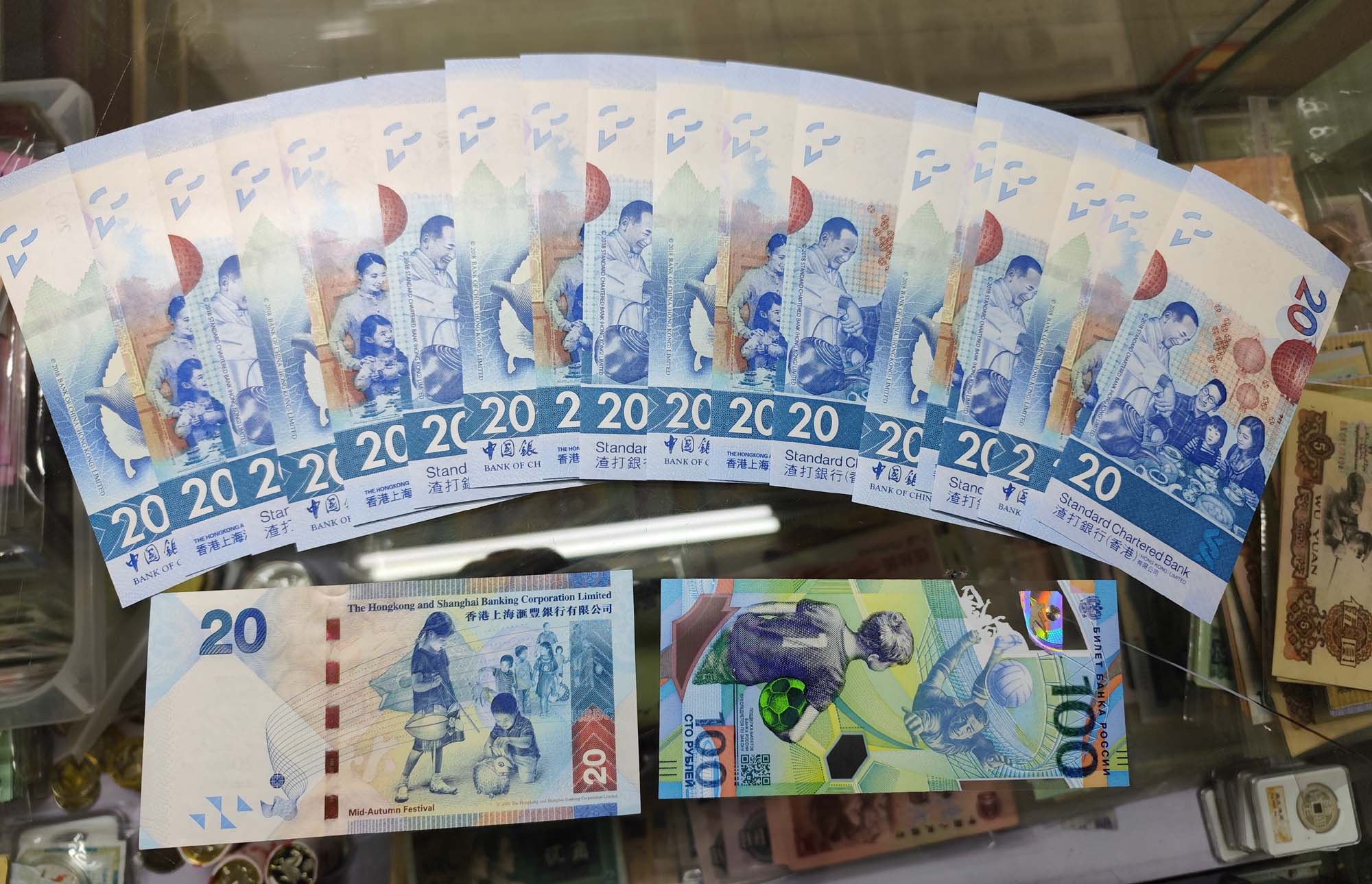 荷花钞 1张 330元!中银百年 3张 360元!妈祖10张 93元!香港塑料 10张,95元!茶艺钞 6套,单价62元一张,372元!港币 足球45元!生肖钞68张(34对)单价9元一张,612元!辛亥百年一张 25元!一起走共计1932元包快!