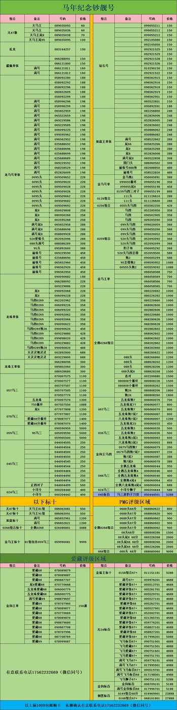 号码如图 欢迎选购