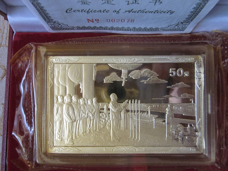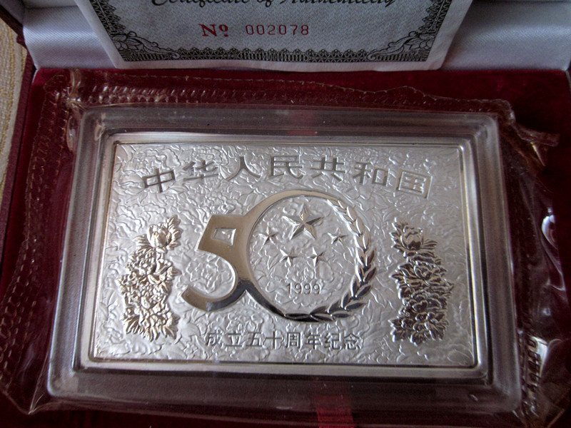投资资讯网交易在线钱币大卖场现代金银贵金属币 → 原装好品1999年【建国50周年——开国大典】5盎司方形银币