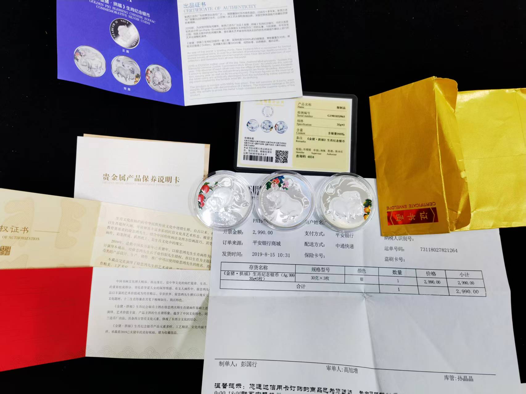 平安商城19年购买 证书说明书 发货单齐全