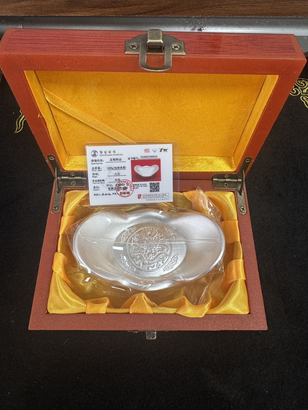 → 售1000克银元宝,盒证齐全,克价26.8元