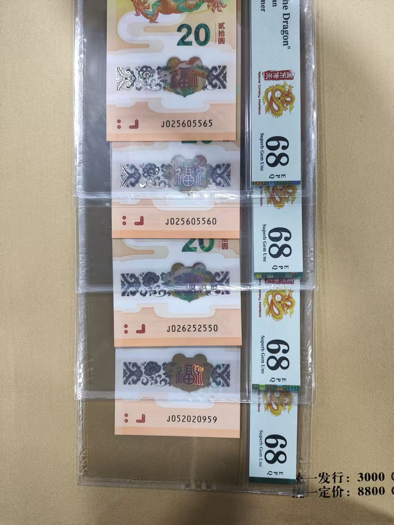 诚出精品小龙钞如意0256--3张+一张520头0259--特价1650*4=6600元