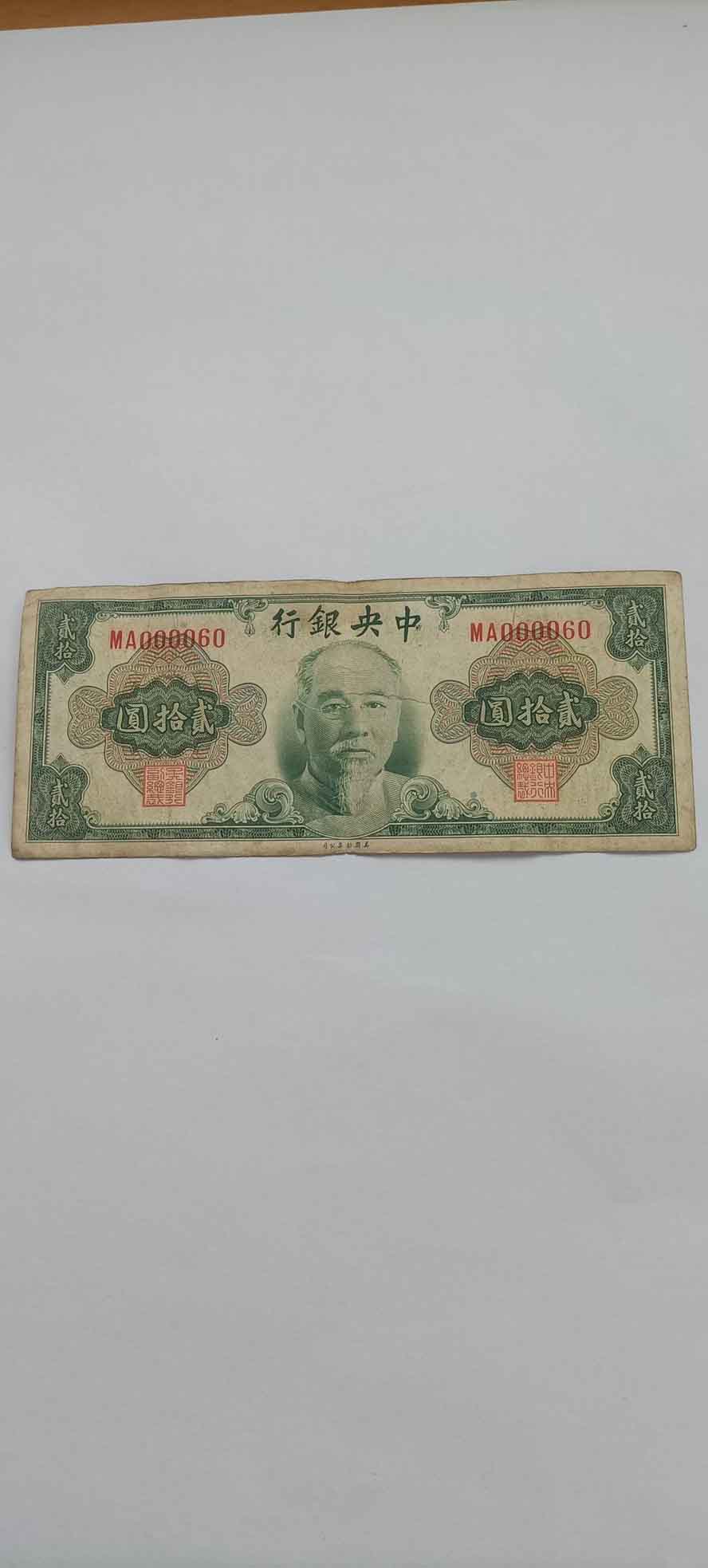 林森像貮拾元大司令号(又是早期冠好)