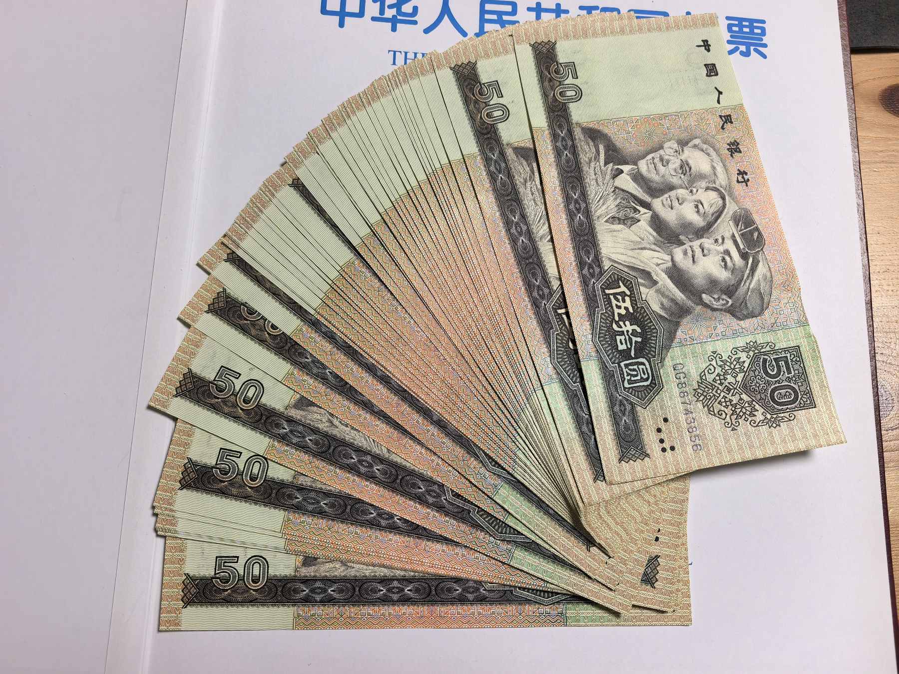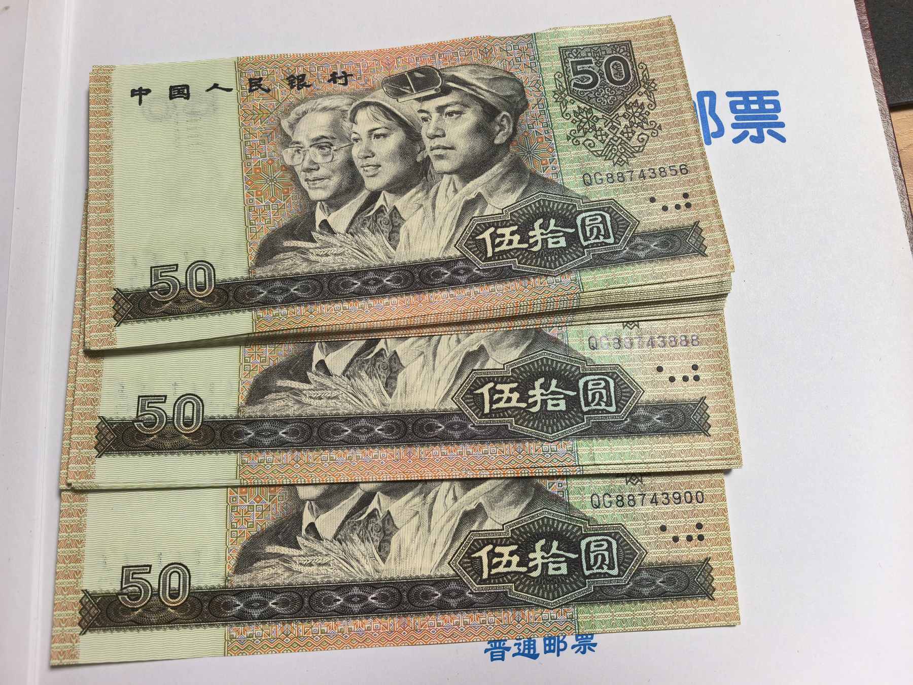 如图,除了有一张有捆印压痕,其他都是全新,一共45连号,中间带一张888豹子号。一起出单价92元包顺丰