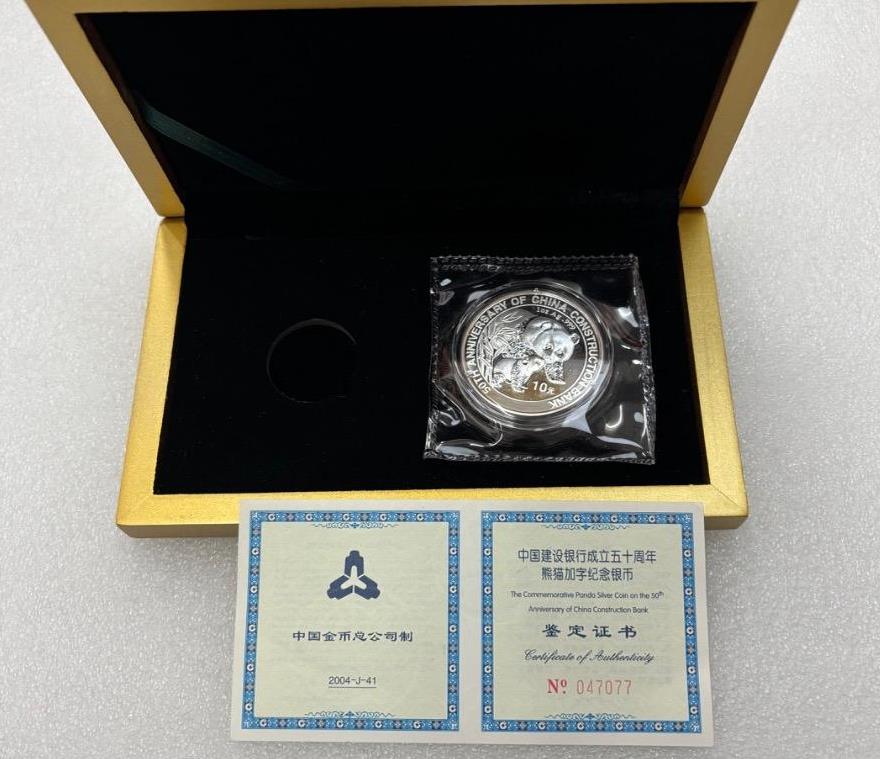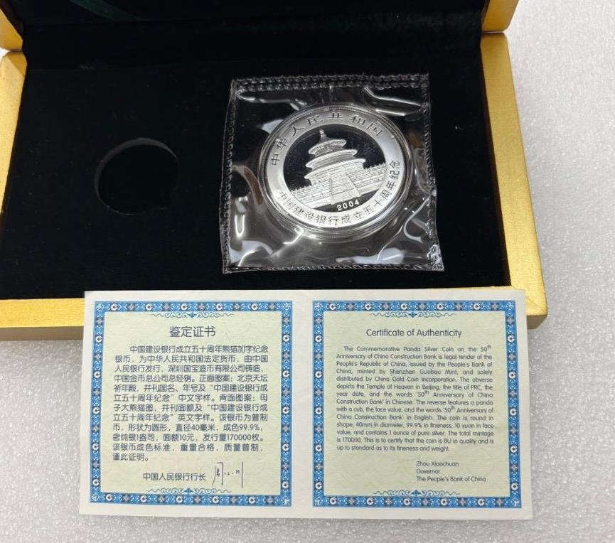 2004年1盎司建设银行加字熊猫银币1枚,原封带证书,盒子是金银币的原盒子,金币售出,价格850元