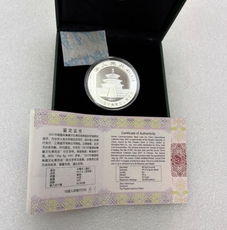 2017年30克集藏文化加字熊猫银币1枚,带证书,价格800元