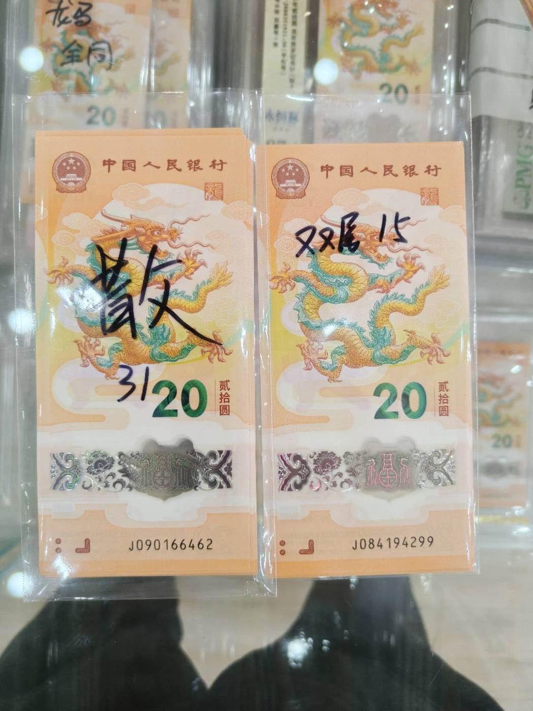 出46张龙钞散张,双尾
