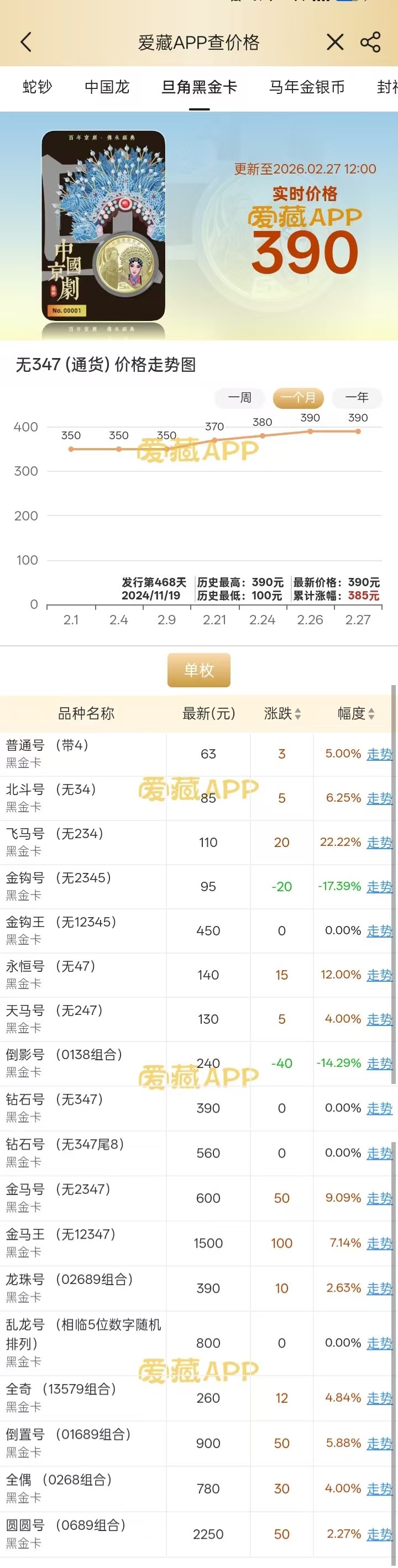 凤冠霞帔==康银阁黑金凤卡==第十五期收购价:
