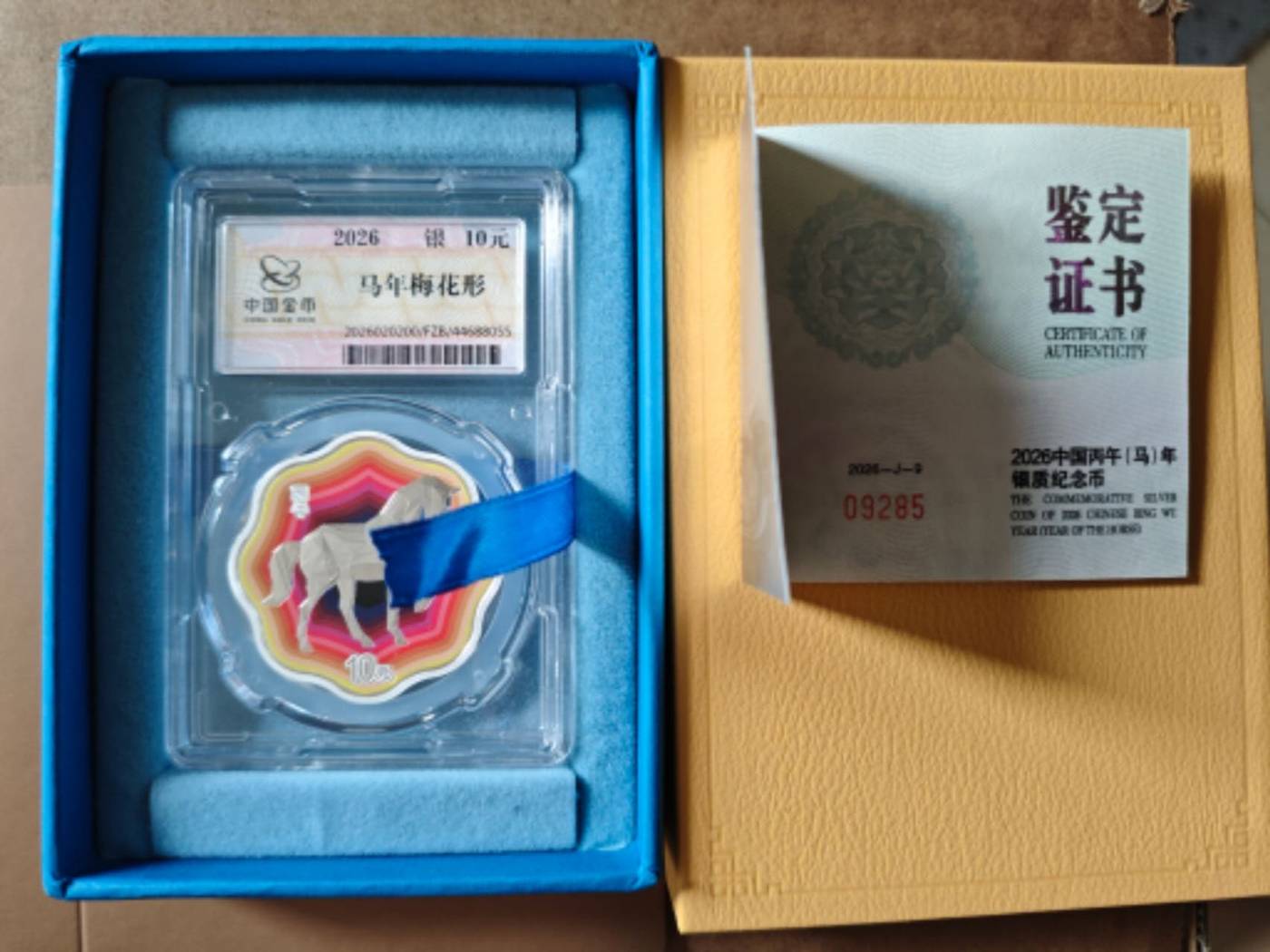 请微信好友确认,2588出一枚封装梅花银马,如意号,09285(0928头,9月28日),今天包顺丰福州发