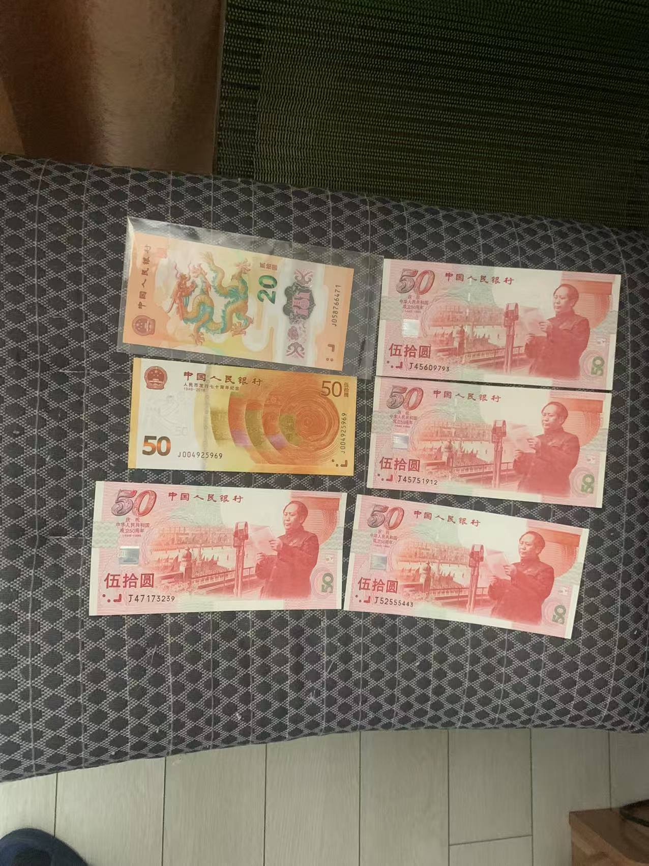 一起700元 其中二张建国钞有折 其他全新