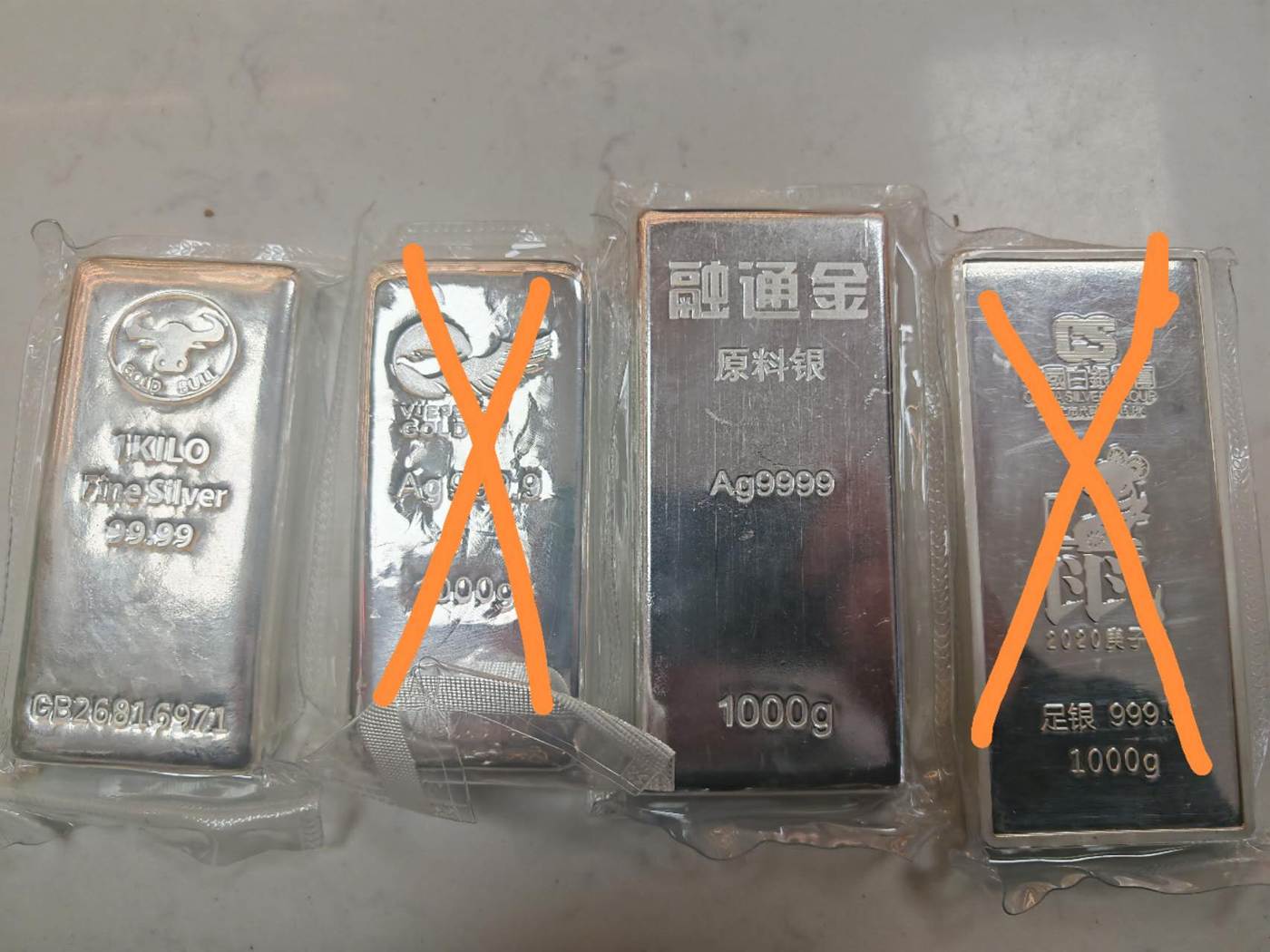 → 25.6出融通金和牛头品牌公斤银条两枚