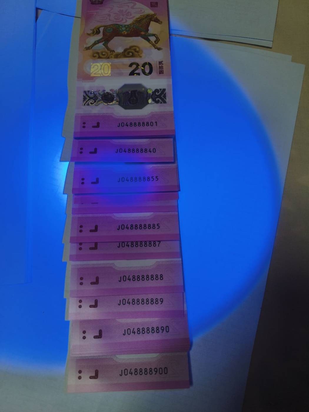 2.马年纪念钞倒置061988886-061988895,有老虎888888。