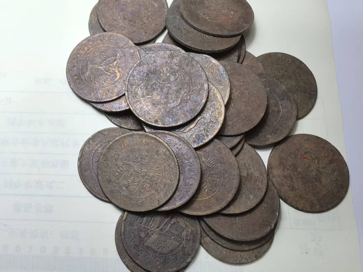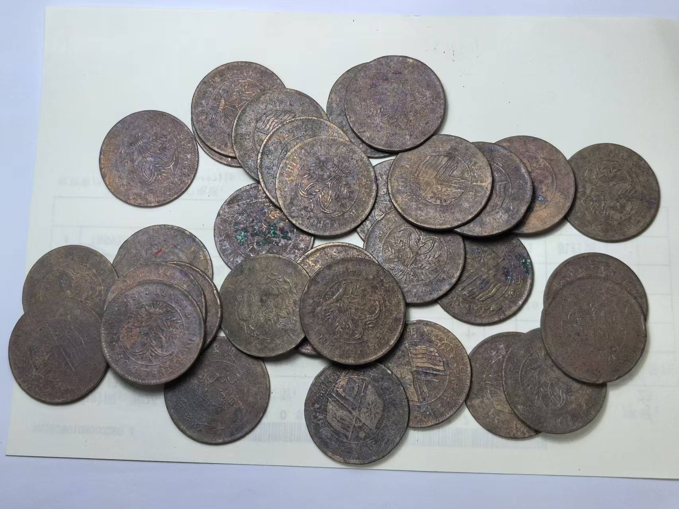 共34枚,双旗二十文,有几枚龙的,如图,一起走100元包邮!