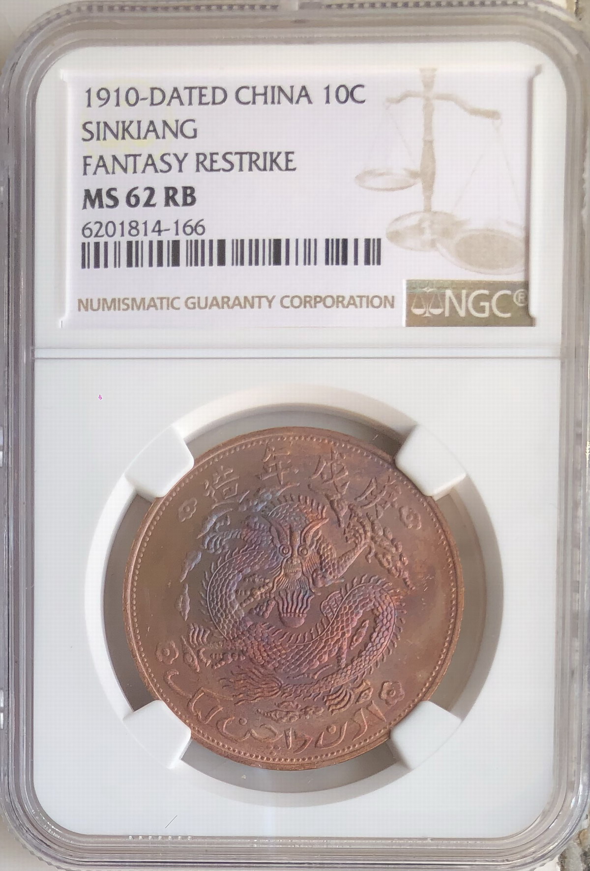 → 庚戌年造新疆通用宣统元宝红钱十文 NGC MS 62/63RB