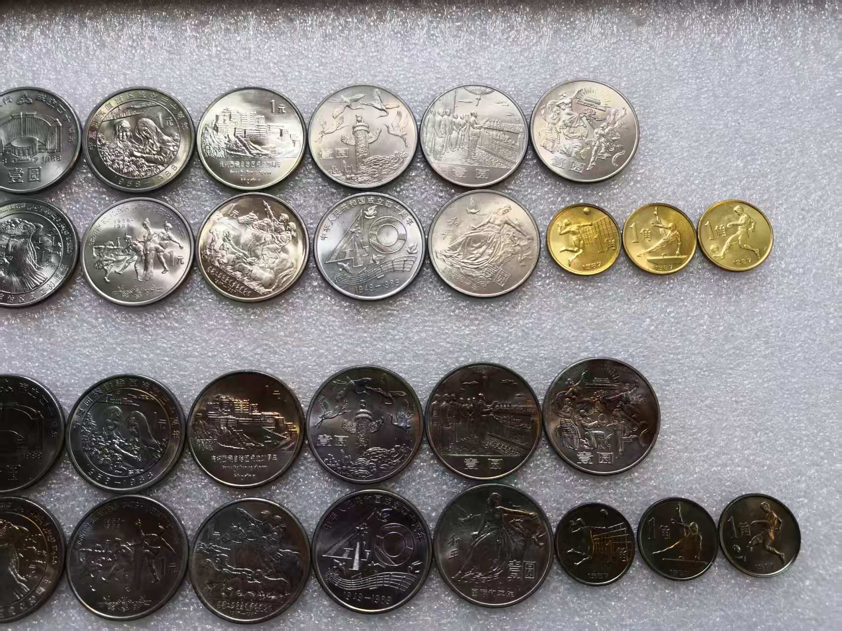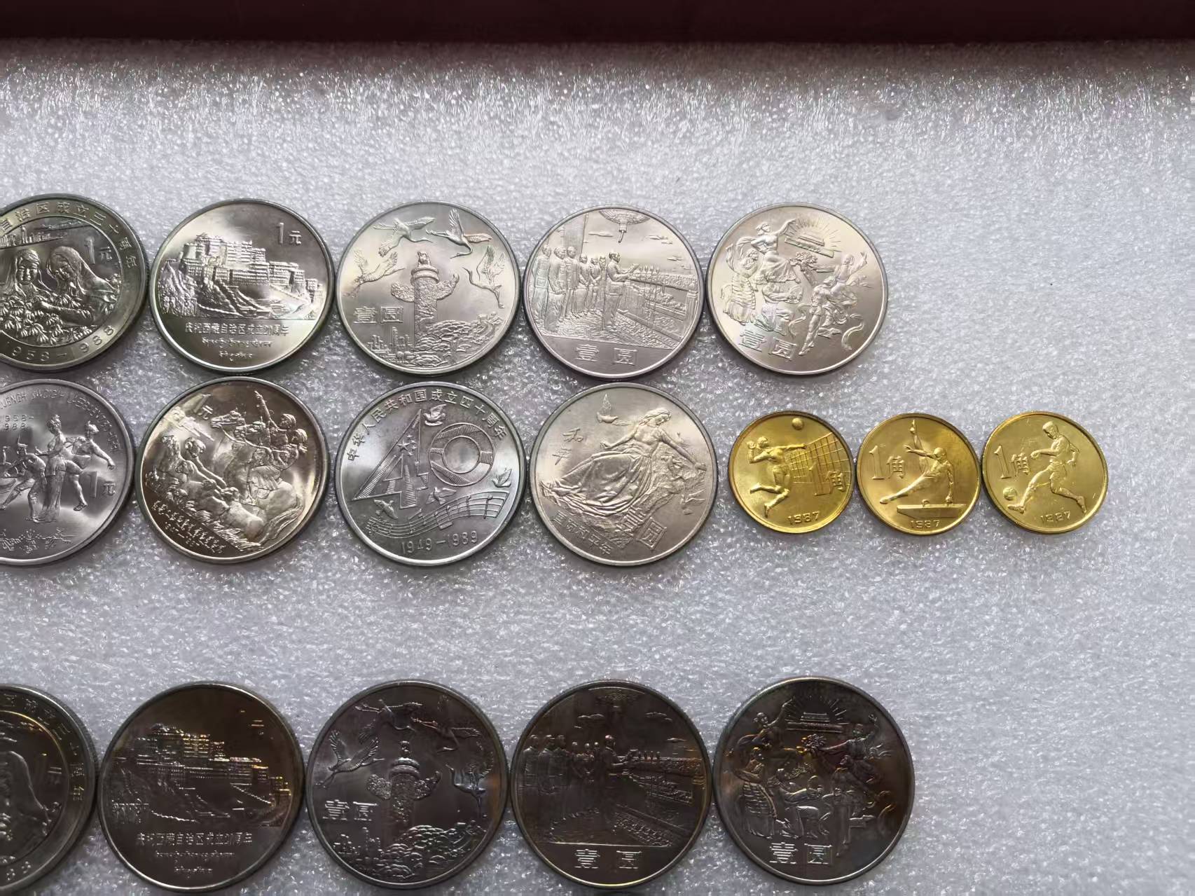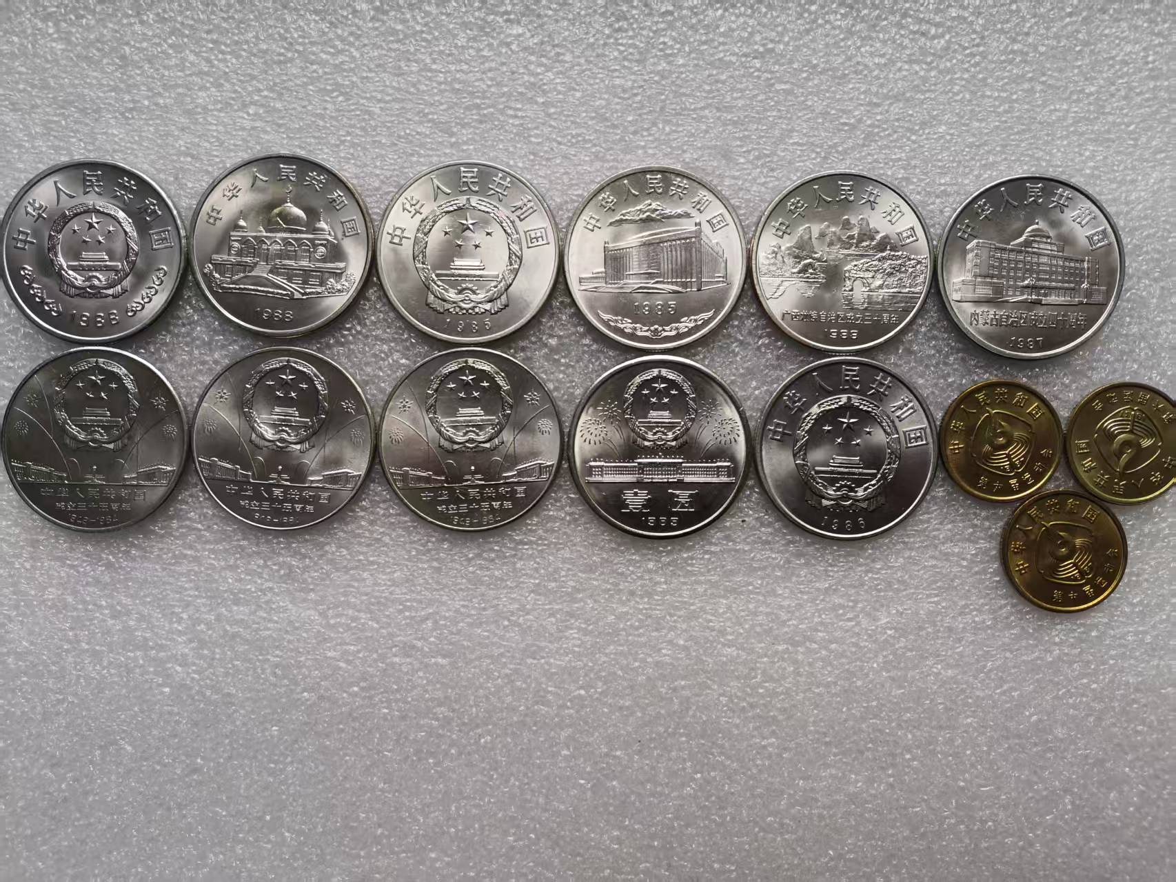 全新3套,第2套黄油光、第3套五彩币总价加200元,建行售1700元,宁夏售780元,老西藏售280元,广西售65元,新疆售65元,内蒙古售35元,和平年售25元,大40售35元,35周年售450元,六运会售400元,实物拍摄包品如图包真。(也有普通品相的有需要的来聊)