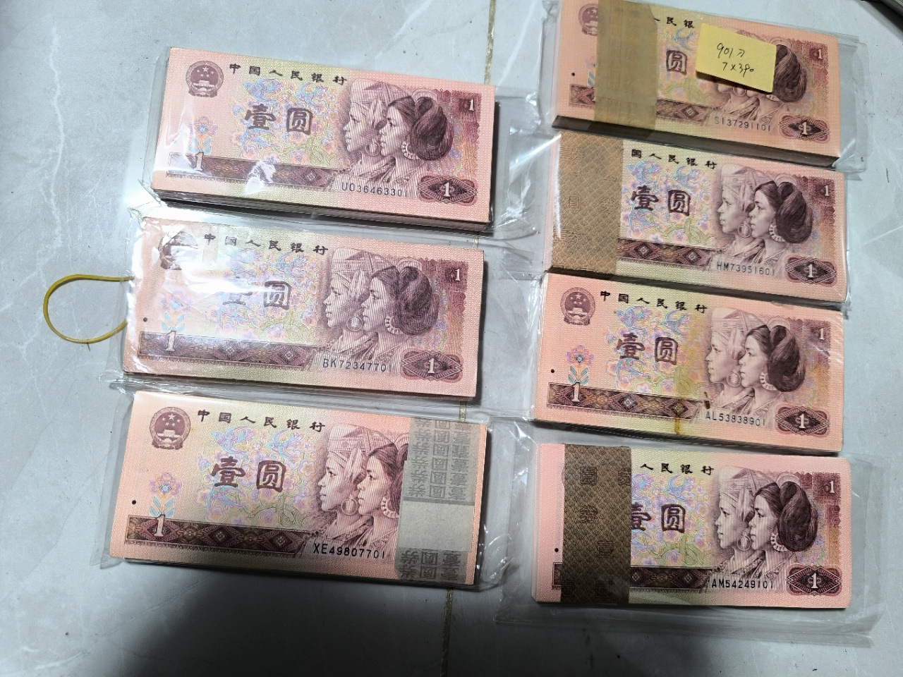 901全品百连7刀,4刀狮子号,有一刀上下一张有皮筋印,一起7*365=2555