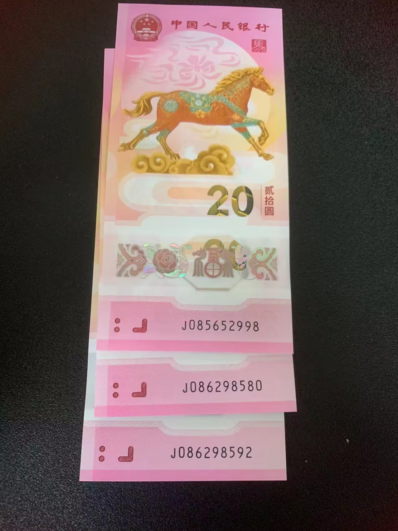 马钞025689组合三张,086头2张,085头尾8的1张,三张420元