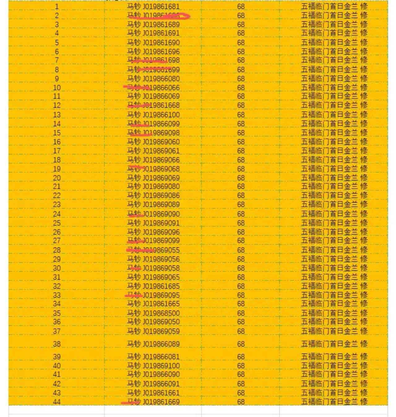 号码如图 除红色标记外全部通走