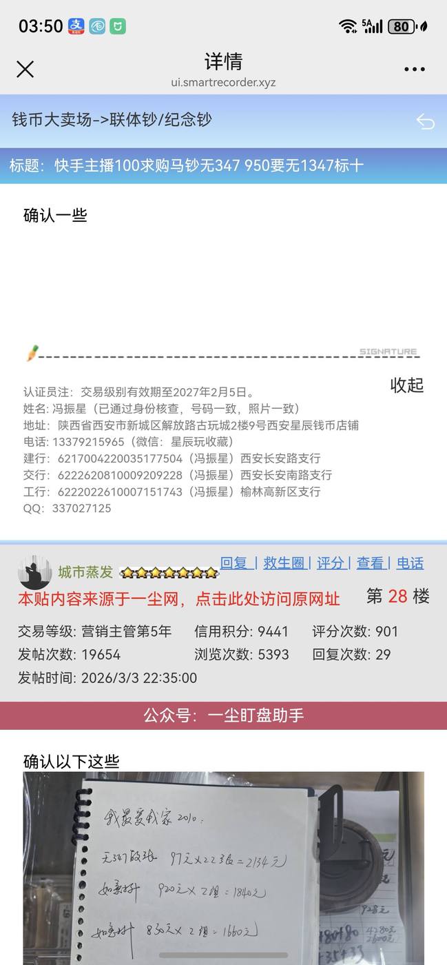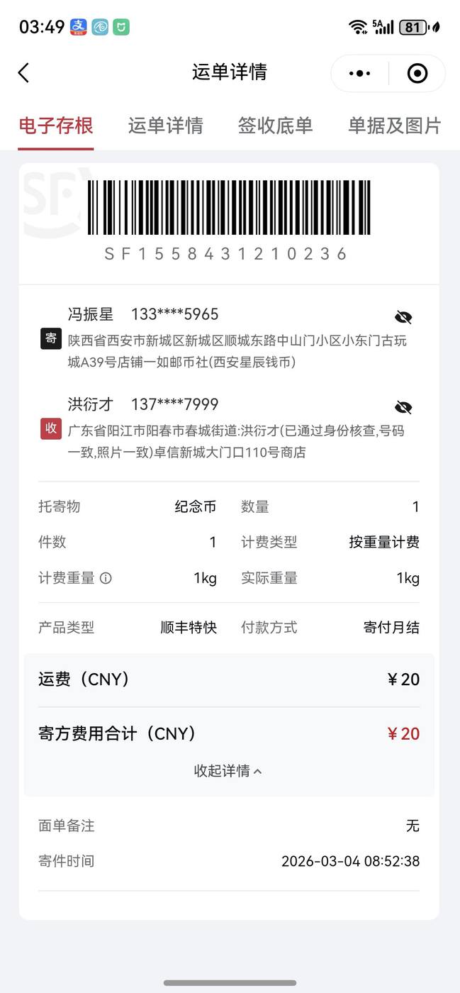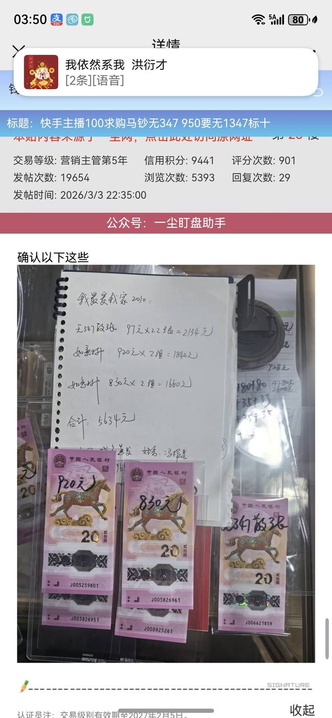 我3月3日晚上10.35在他的帖子更帖确认5634元马钞,今天早晨快递已经发走,刚刚他告知我钱不够了,不收了,让我退回。请版主进来帮忙处理一下。