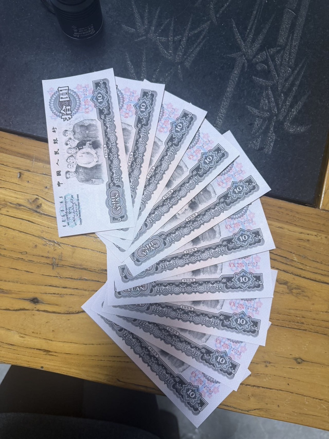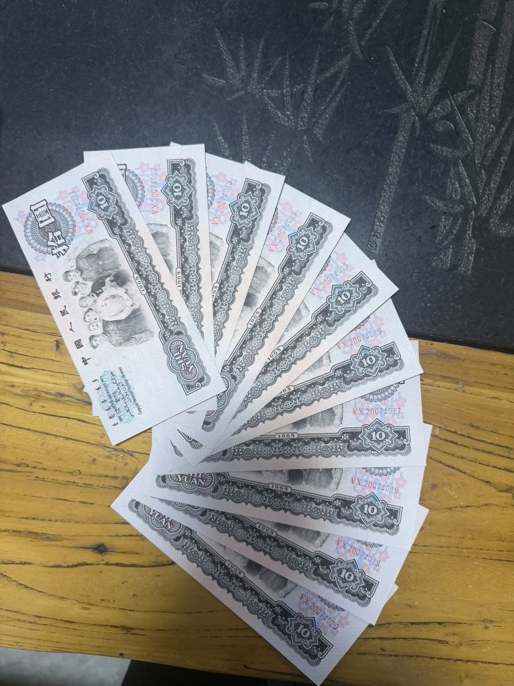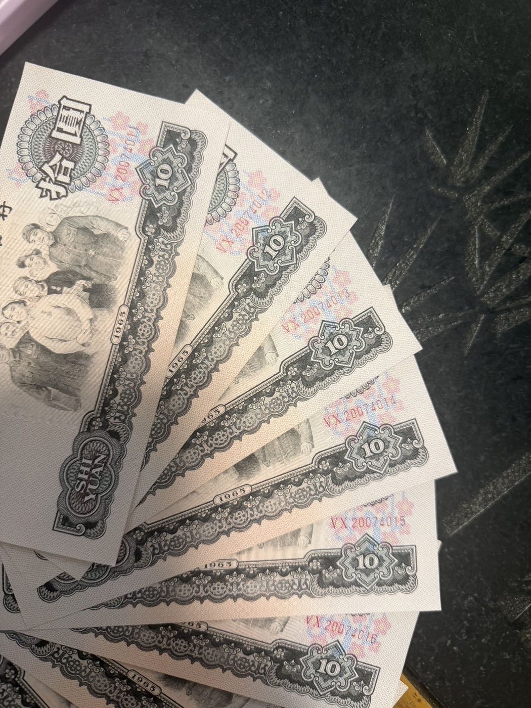 → 2组五彩大团结标十,标准生日钞
