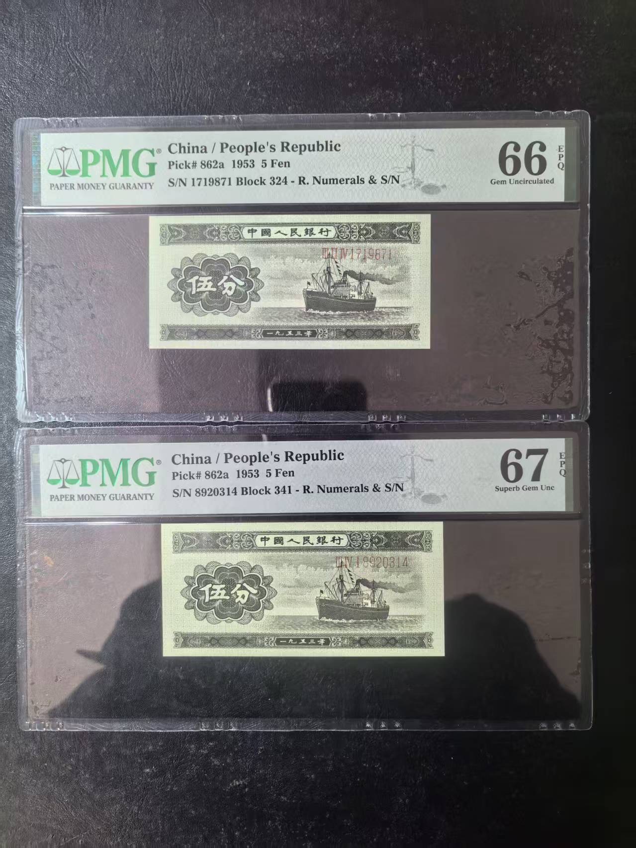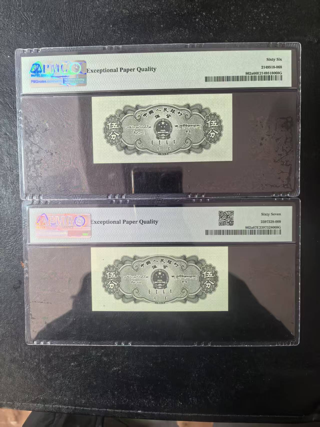 二版长号5分美评PMG66E金钩倒置+美评67E,都是全新直版原票,两张售价3380包顺丰