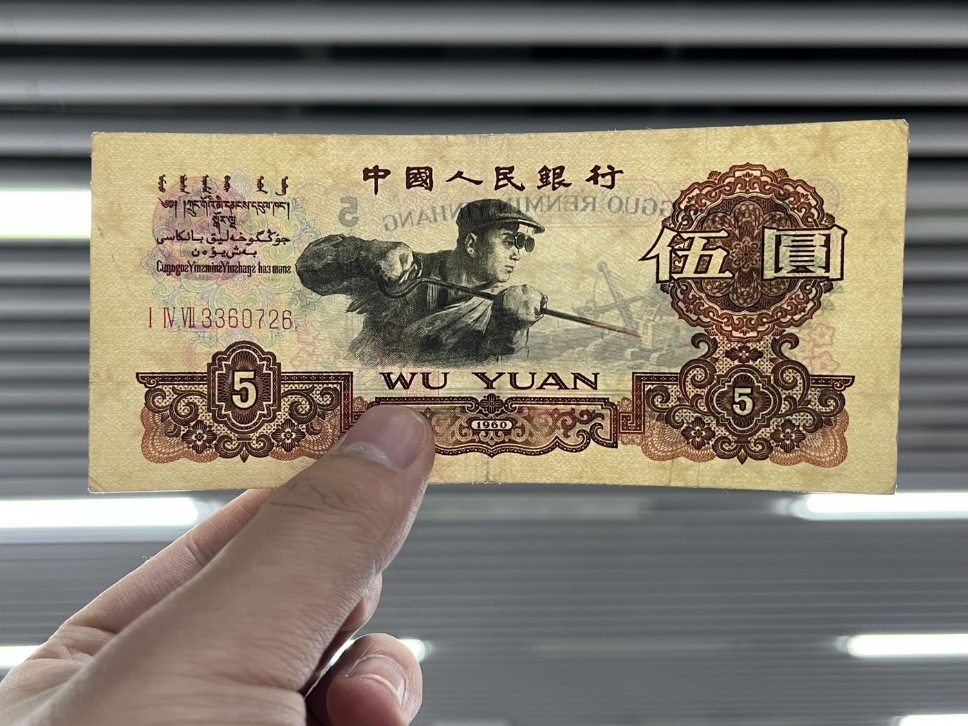 三版炼钢五元,1960年5元,炭黑,全程无四,关门冠组147冠,惠售198元包邮,联系确认18800292096