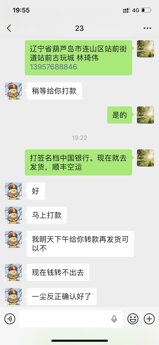 与买家谈好明天下午款到发货
