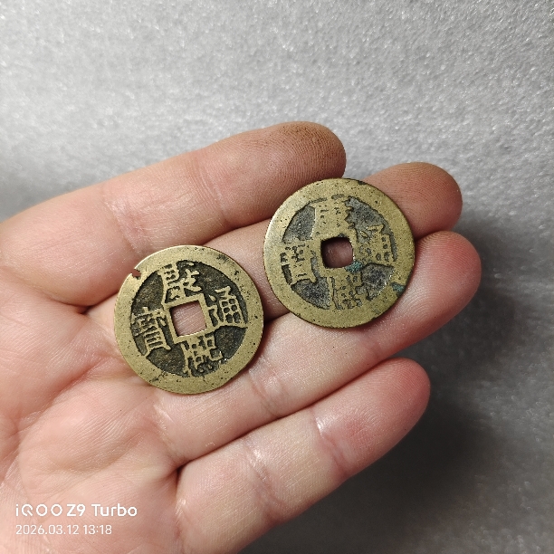 → 康熙通宝满汉江二枚一起传世黄亮