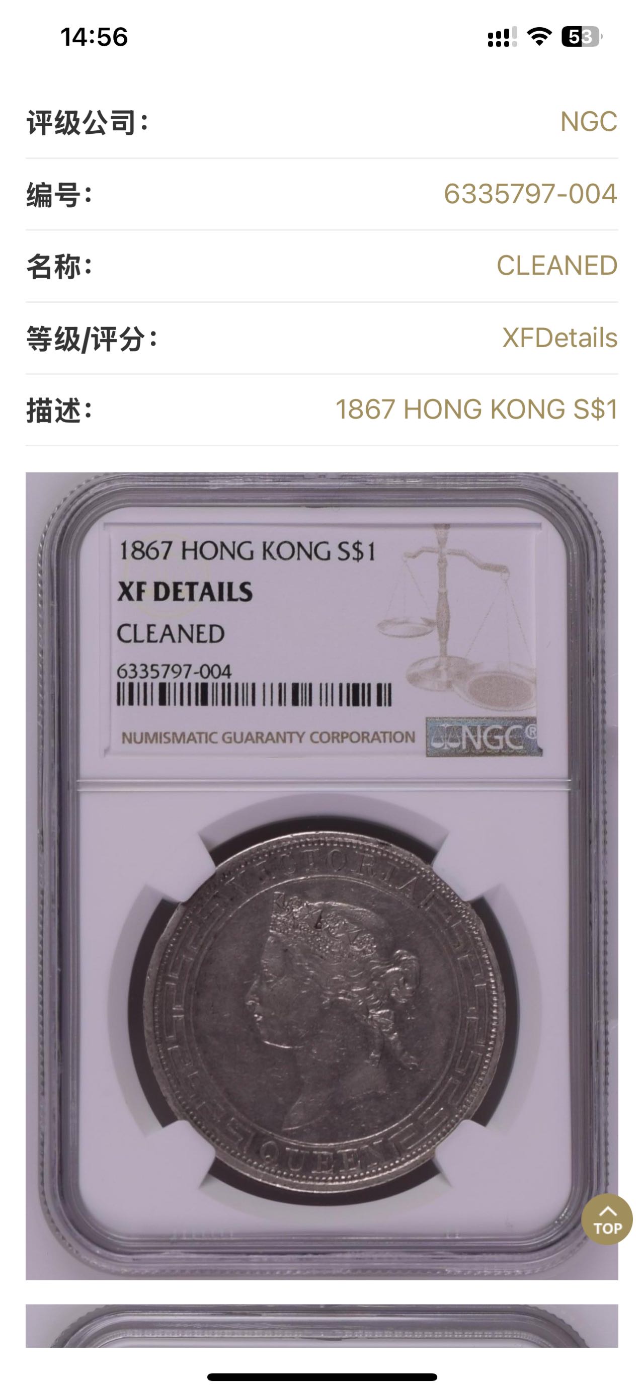 投资资讯网交易在线钱币大卖场古币银元 → ★9800元出 NGC92 稀少 1867年 “香港壹圆” 大银币