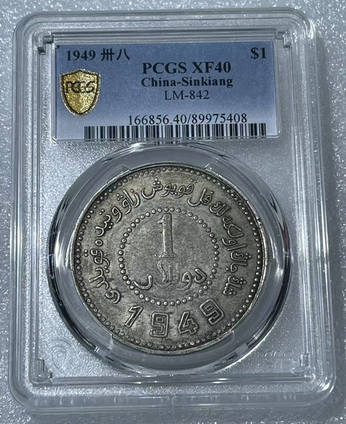 → PCGS XF40原包浆极美品新疆1949年壹元