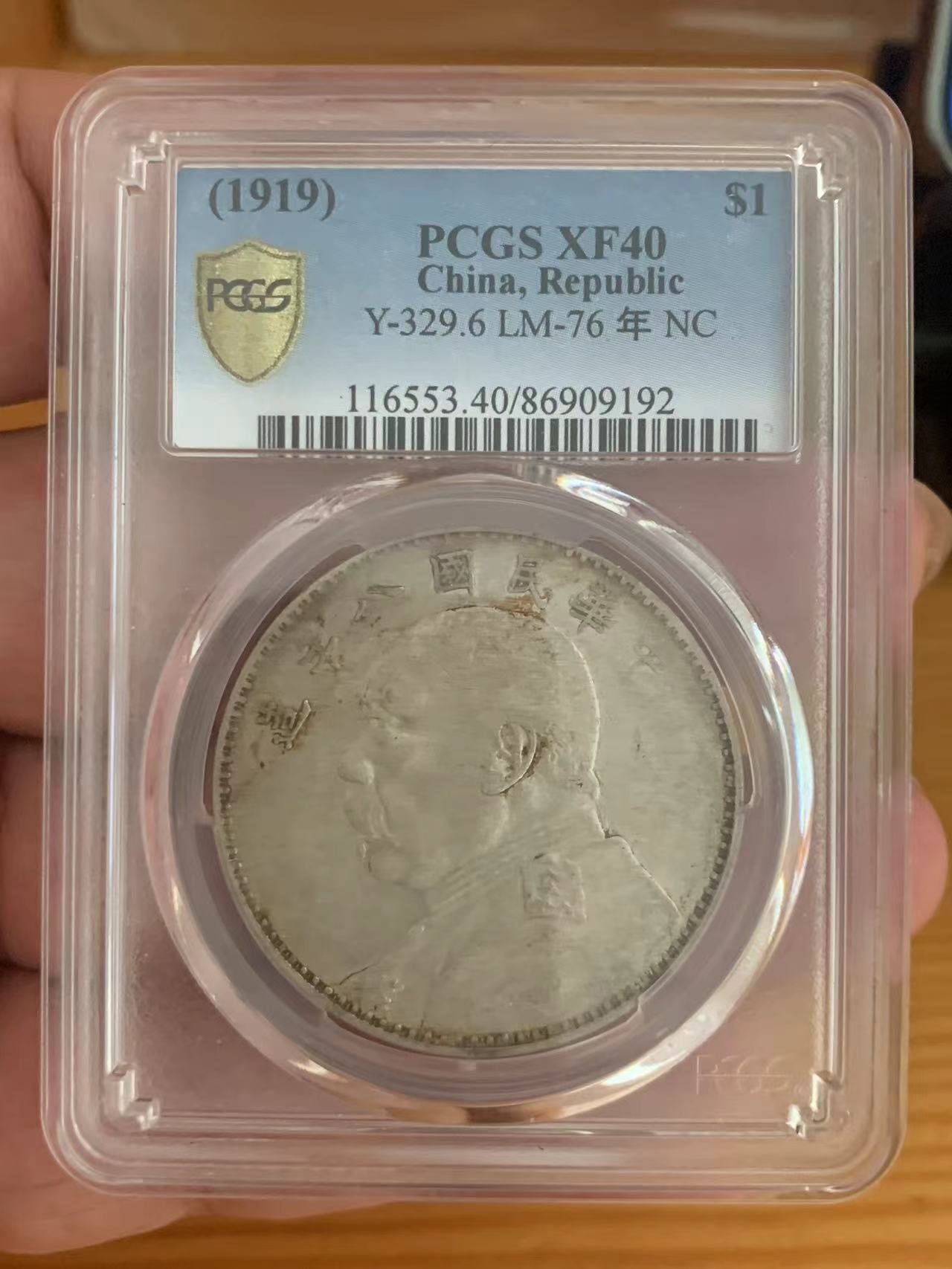 PCGS XF40,八年大头壹枚,左勾芒右连芒,6900