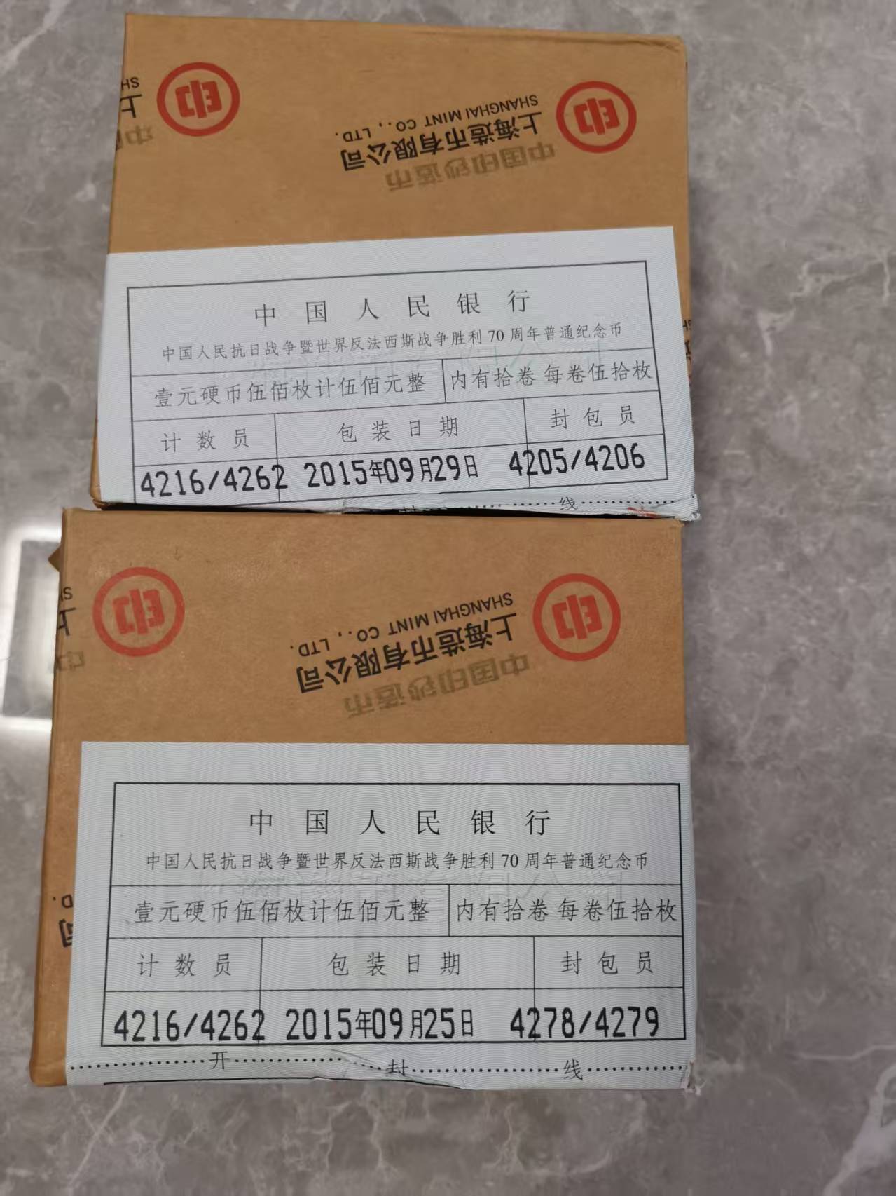 → 卖 抗战70周年纪念币2盒