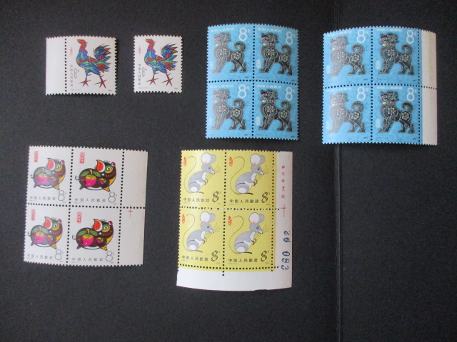 牡丹亭铭方顺55元。狗版号方联全品70元。猪电眼方联:竖齿间折痕,全品95元。
