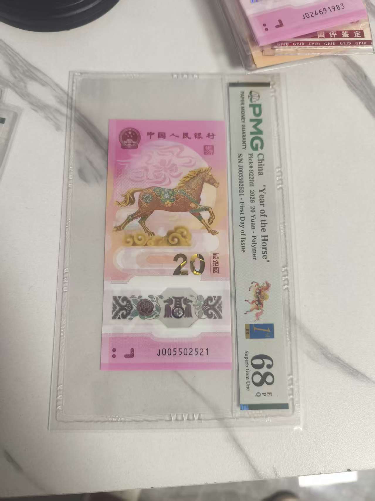 → 出0125光复号尾521爱情号,首日pmg68马