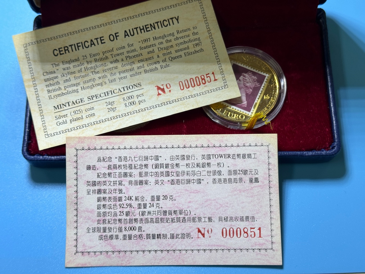 24克925银加一枚铜镀金纪念币。原盒带证书 458包邮 电话联系确认
